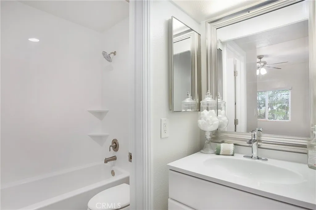 Welcome to 5 Rosa. This completely remodeled 2 bedroom, 2 bath home is located in one of the best corner locations in the community and walkable location if the city. The charming, covered patio and with a picket fence gate, lush landscape, trees and privacy is the perfect place for coffee, dinner or quiet time. Every inch of this home has been renovated including new AC the kitchen with new white soft close shaker cabinetry with pullouts, quartz countertops, recessed LED lighting, stainless appliances including the new dishwasher, microwave and the french door refrigerator. The home is light and bright with new luxury vinyl plank flooring, paint and baseboards and ceiling fans throughout. The spacious living room includes a gas fireplace for cozy winter nights and plenty of room for your sectional and biggest TV. The two bedrooms with ceiling fans and lighting are located at opposite end of the home for privacy, both with new blinds and each with their own bath. Both baths have been updated with new floor to ceiling tub/shower, vanities, lighting and framed mirrors. The inside laundry with new washer and dryer is conveniently located just down the hall. Other features of the home include an abundance of storage with floor to ceiling cabinets, pantry and closet off dining room, linen cabinets, panel doors with new hardware, designer lighting in the hallway and just steps from your covered parking and community pool and spa. Home was also PEX repipe. Centrally located right across from Santa Margarita Lake with restaurants, shopping, coffee shops, public transportation, park
