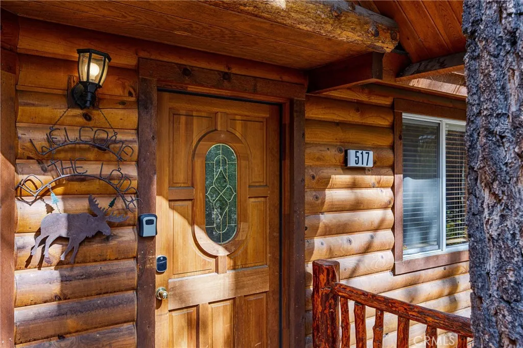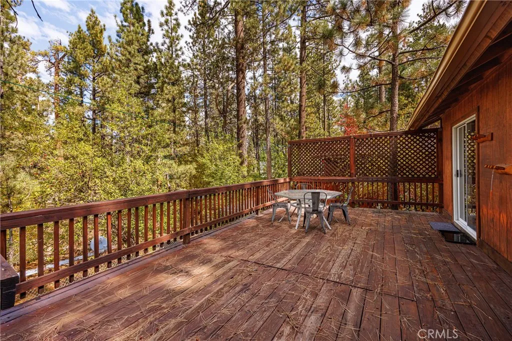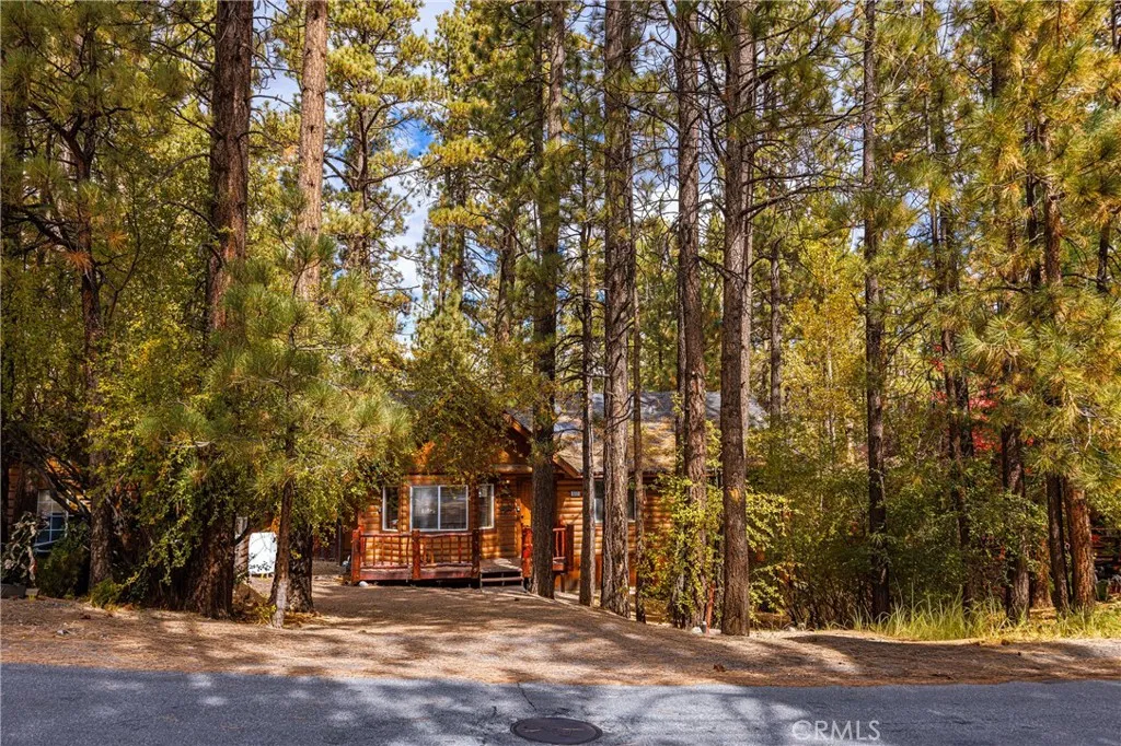 Discover this charming 3 bedroom 2 bath log-style home perfectly situated in the heart of Big Bear City. Surrounded by mature trees, this cozy retreat offers the true mountain feel youve been looking for. Step inside to a warm and inviting living space featuring a beautiful rock fireplace, ideal for cozy winter nights. The spacious dining area flows off the kitchen and opens to a large back deck, perfect for entertaining or relaxing while overlooking the fenced backyard. The home offers a comfortable primary suite, a second full bath, and a full-size laundry room. Enjoy the comfort of central heating and the convenience of single-level living. Comes fully furnished & ready for immediate move in.