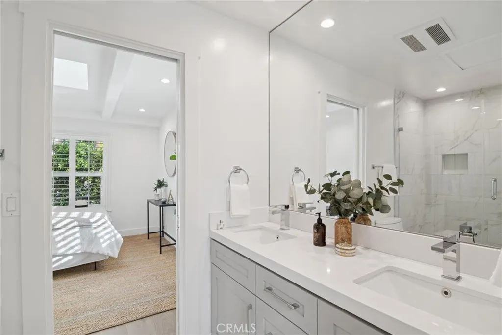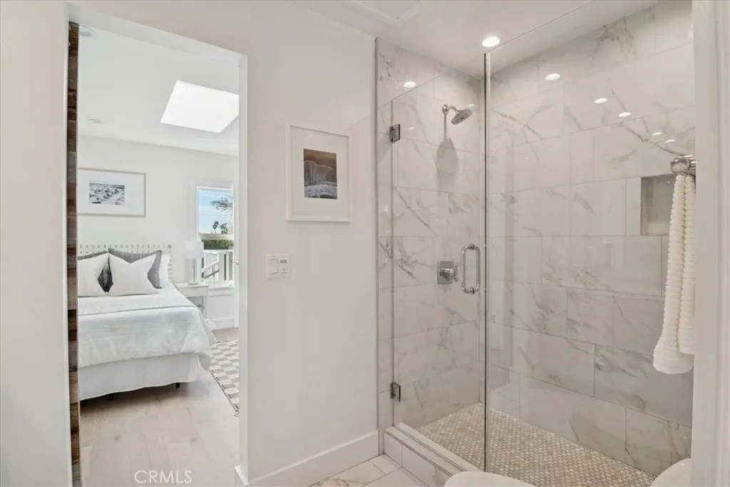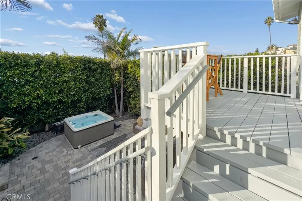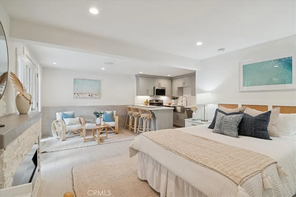 This beautifully remodeled coastal home sits in the heart of South Redondo Beach and welcomes you with charming curb appeal and a bright modern interior that blends beachside style with comfortable everyday living. The upstairs level features an open kitchen with shaker cabinetry, stainless appliances, a peninsula with seating, and picture windows that bring in natural light and palm tree views, all flowing into a warm and inviting living area with skylights and clean designer finishes. Two serene bedrooms connect through a spacious Jack and Jill bathroom finished with updated marble style tile and a glass enclosed shower, while the rear door opens to a peaceful balcony that captures breezes and sun throughout the day. The lower level feels like a private retreat with a full studio style layout complete with its own beautifully updated kitchen, a relaxing living and sleeping area anchored by a sleek modern fireplace, and direct access to the backyard. The yard is surrounded by lush greenery for privacy and features paver stone patios, an outdoor lounge area perfect for entertaining, and a hot tub for enjoying warm South Bay evenings. A washer and dryer setup located in the backyard shed adds convenience and storage. Whether used as one cohesive home with multiple living spaces or as two separate units with income or guest potential, this property offers rare flexibility in an exceptionally walkable location just minutes from the beach, the Esplanade, the Redondo Pier, top rated schools, and the boutiques and restaurants of Riviera Village, creating the ideal South Redondo l