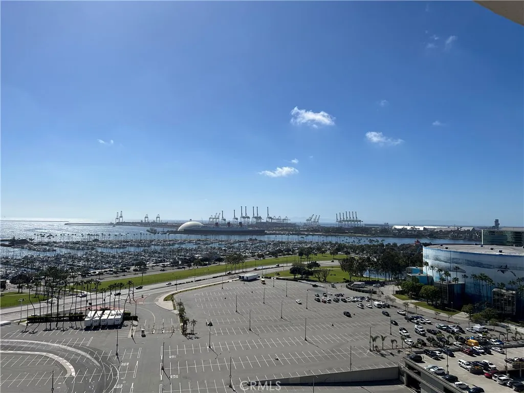This beautiful condo is located on the 17th floor in this high-rise building with two bedrooms and two baths overlooking the Marina, Queen Mary and the beach. This unit has the best view of the Grand Prix, looking at the S-curve right from your balcony. Open floor plan with lots of natural light and view from every room. Beautiful hardwood floor and newly painted interior to make this unit an elegant space for entertaining and everyday living. Master bedroom comes with two large closets and a luxurious bathroom with a large bathtub and a separate shower. This unit comes with two parking spaces in gated structure parking. The Harbor Place Tower has 24-7 reception staff, a well equipped gym, pool, spa and saunas. It is walking distance to downtown, the East Village Arts District, the Pike, Metro Rail, the beach and the Marina.