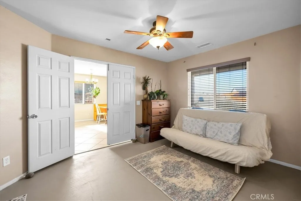 Welcome to Turtlerock! This single-story home offers 3 bedrooms, 2 bathrooms, and a bonus office space with beautiful built ins that can be used as a fourth bedroom. Situated on a corner lot, this gives you a huge backyard space, big enough for a pool, park your RV and even covered patio space for outdoor entertaining! There's a cozy fireplace and more built in shelves in the large living room off the kitchen which gives the space a feeling of the open flow concept. Theres also a separate dining area for entertaining guests. Laundry is located inside your home instead of the garage space, and speaking of garages, there is an oversized attached 2 car garage, accessible from inside the home. All bedrooms are spacious and the primary has its own en-suite bath with soaking tub, separate shower, and walk in closet! Located in the Turtlerock development of Twentynine Palms, it has a very low HOA that includes a professionally managed septic system, and general maintenance of the common areas including the landscaping of the outer perimeter, it is also well know for their covered front porches and a functional floor plan that gives you plenty of living space. Recent updates include interior paint, partial roof replacement, and an updated A/C duct system. Newer light and plumbing fixtures give it a more updated feel as well. And it's all located within minutes to the front entrance to the 29 Palms Marine Corp Base, Joshua Tree National Park, and the up and coming downtown 29 Palms area for shopping and restaurants. Whether this will be your first home, or an investment property, it