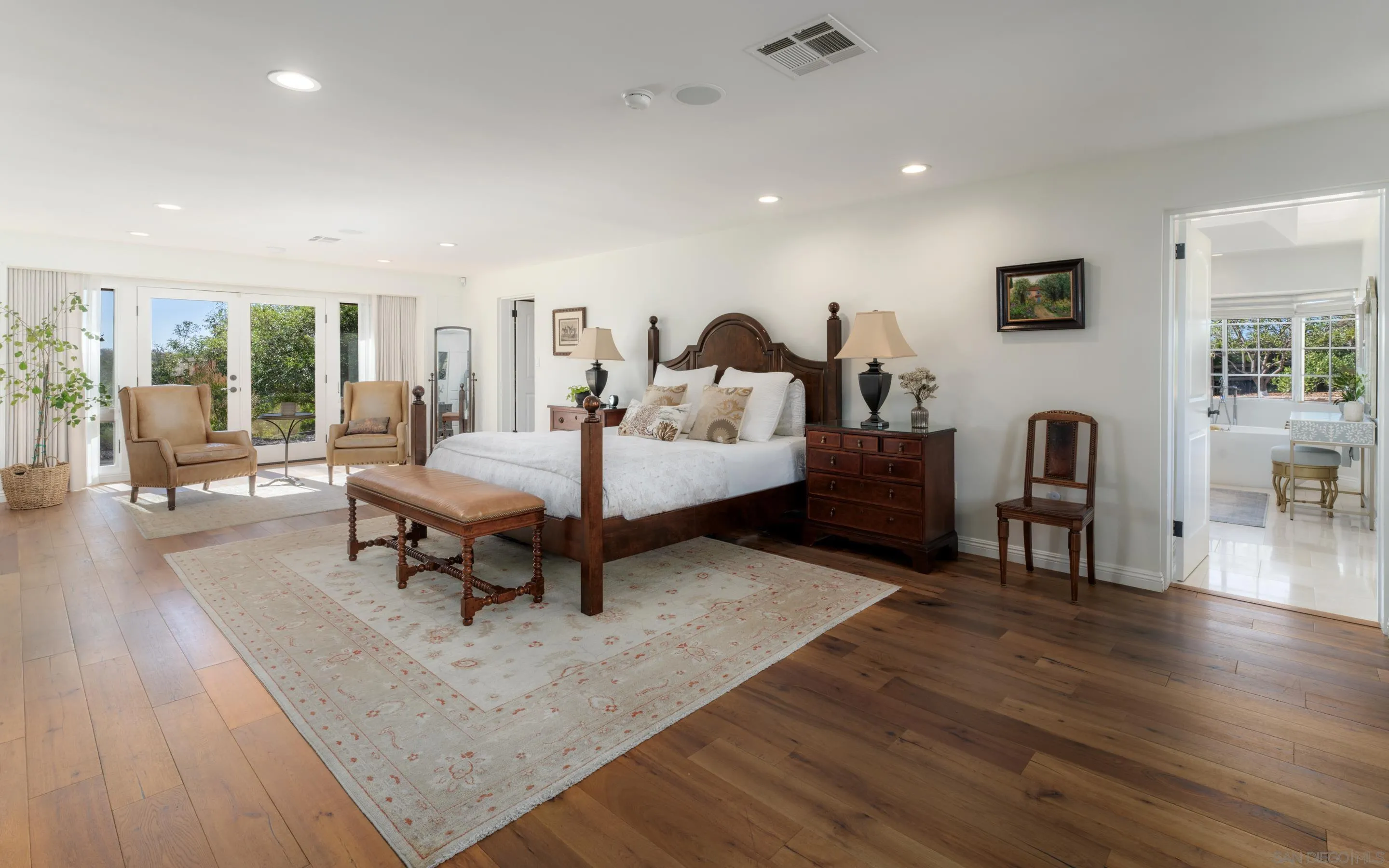 Perched on a desirable hilltop on the coveted West Side of the Covenant, this stunning single-level ranch-style estate is a private sanctuary set on 3.6 lush acres. A long private driveway and graceful circular drive introduce the home with an elegant and serene arrival, offering unparalleled privacy and sweeping views. The light-filled main residence features 4 spacious en-suite bedrooms, 4.5 bathrooms, and approximately 4,759 sq. t. of refined living space designed for both grand entertaining and intimate everyday living. Highlights include a gourmet kitchen that opens seamlessly to the sparkling in-ground pool and expansive patios, a generous living room built for gatherings, a sunroom bathed in natural light, a dedicated office, and indulgent master suite you won’t want to leave. A charming detached 2-bedroom, 2-bathroom guest house with full kitchen is perfect for family or guests. Outdoor living is elevated with a detached gym, citrus groves, raised garden boxes, and plenty of room to roam. Residents enjoy direct access to 60+ miles of pristine equestrian trails, the highly acclaimed Roger Rowe School (K-8), and the community’s legendary lifestyle. Additional features: Two-car garage with EV charging. Owner pays electric, high-speed internet, and HOA fees – an exceptional value in the Covenant. Experience luxury living in a peaceful, timeless setting designed for comfort, elegance, and the ultimate Rancho Santa Fe lifestyle.