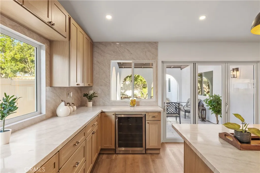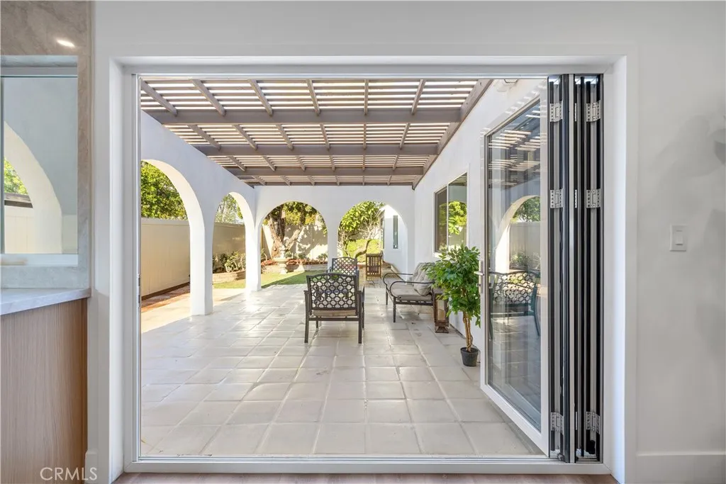 Welcome to 5385 Strasbourg Ave an exceptionally redesigned 5-bedroom single-story home located in one of Irvines most desirable communities, The Ranch! This newly remodeled residence blends modern sophistication with timeless comfort, offering a rare combination of indooroutdoor living, expansive entertaining space, and thoughtful craftsmanship throughout. Step inside to soaring vaulted ceilings, wide-plank flooring, and an open-concept layout that immediately feels warm and inviting. The living room features a striking floor-to-ceiling custom fireplace and oversized picture windowperfect for natural light and neighborhood views. The heart of the home is the showcase chefs kitchen, completely reimagined with custom wood cabinetry, premium stainless-steel appliances, a massive center island with bar seating, designer pendant lighting, and sleek quartz countertops that offer both beauty and durability. The kitchen flows seamlessly into the dining and family areas, ideal for entertaining and everyday living. Retreat to the luxurious primary suite, offering a spacious bedroom, a spacious walk-in closet, and a spa-inspired ensuite bath complete with a dual-sink floating vanity, large walk-in shower, rainfall fixtures, and contemporary finishes. Four additional bedrooms provide ample space for guests, family, or multi-use living. Every bathroom has been beautifully renovated with cohesive, high-end design. What truly sets this home apart is its unique indoor-outdoor layout. Oversized bi-fold doors open to a covered Spanish-inspired patio framed by graceful archescreating a true