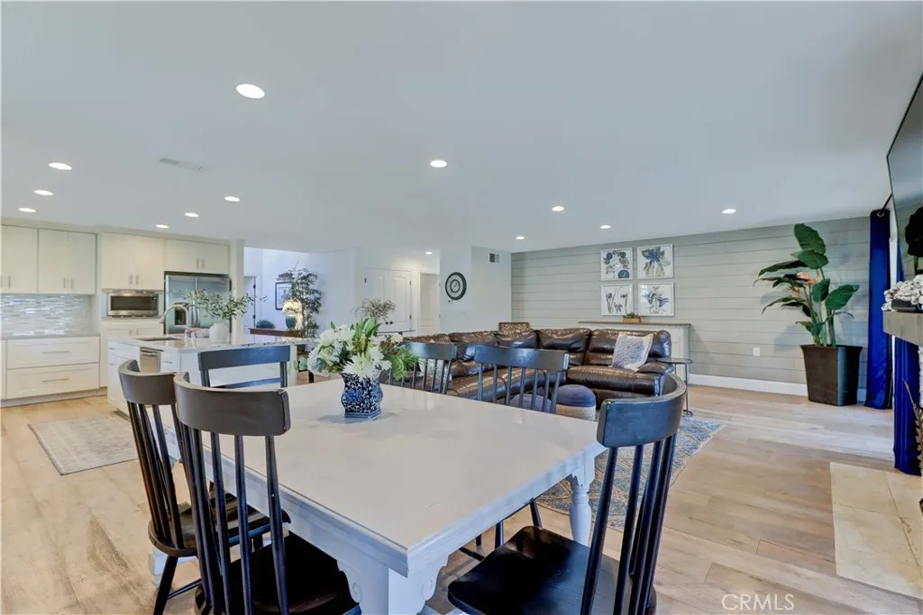 A rare opportunity in one of the most sought-after locations in Laguna Woods Village. This beautifully remodeled 3-bedroom, 2-bath Casa Grande offers approximately 1,900 square feet of warm, sophisticated single-level living with an attached 2-car garage. From the moment you enter, an inviting open-concept great room anchored by a stone-lined fireplace sets the tone for relaxed elegance and effortless entertaining. The remodeled kitchen truly feels like the heart of the home, showcasing a generous island with seating, sleek stainless steel appliances, recessed lighting, and abundant cabinetry that flows seamlessly into the dining and living areas, all enhanced by rich wood flooring. The spacious primary suite is a serene retreat, featuring a walk-in closet, walk-in shower, and dual sinks, while two additional bedrooms offer flexibility for guests, a home office, or hobbiesone guest room enjoying a lovely view that brings in natural light and a sense of openness. Thoughtful upgrades include double-paned windows/doors and central heating/air conditioning, creating a quiet, comfortable environment year-round. A separate laundry room with sink and extensive cabinet storage adds everyday convenience. Outside, the covered rear patio framed with pavers extends your living space and invites morning coffee, casual alfresco meals, and evening gatherings. The patio opens to an attractive view, enhancing the feeling of privacy and calm and making this home a standout opportunity for those seeking an upscale, move-in-ready residence in Laguna Woods Village.