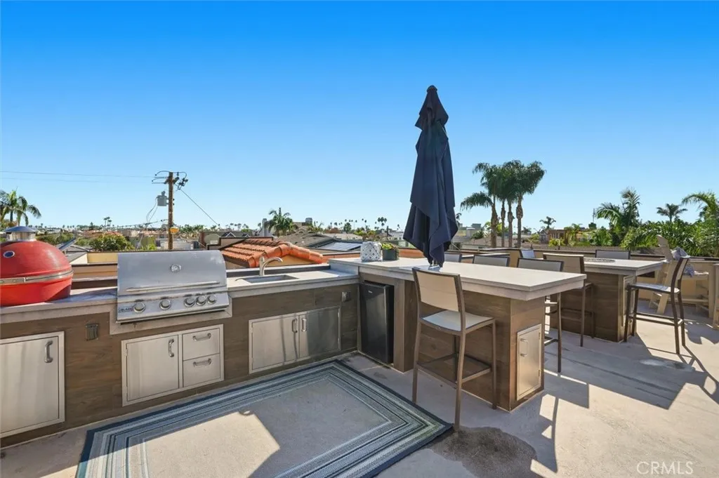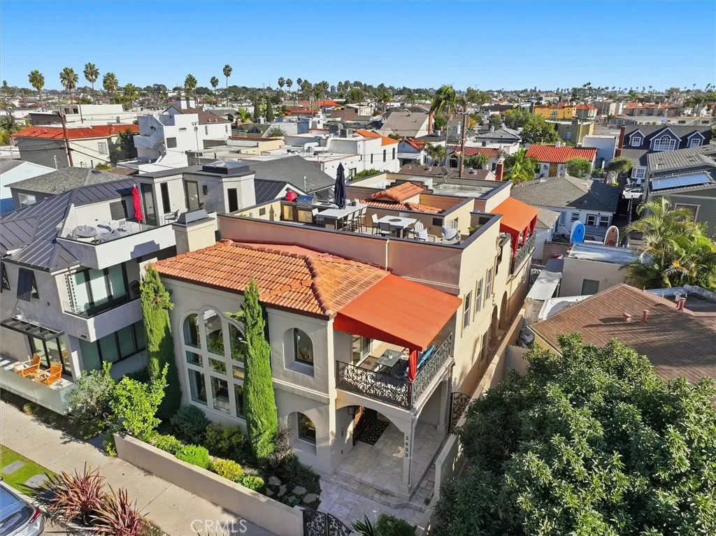 NEW PRICE!!! Stunning, designer Naples Island home just steps from the waterfront and adjacent to the upscale second street restaurants in the beautiful luxury neighborhood of the Belmont Shore offering exceptional value, luxury finishes, and an expansive rooftop deck with spectacular 360 water and city views. Built in 2006, this coastal residence showcases an impressive open-concept layout with soaring two-story ceilings, dramatic window displays that flood the home with natural light, and beautiful travertine and hardwood floors throughout. The highly upgraded chefs kitchen is equipped with premium stainless-steel appliances including Wolf range and hood, Wolf double ovens, and a Sub-Zero refrigerator, centered around a functional island ideal for cooking and entertaining. The spacious Great Room flows seamlessly to an outdoor patio, creating the perfect indoor-outdoor living environment. The main level also features a private fourth bedroom plus a home theater or dedicated office option, and a massive three-car garage. Retreat upstairs to the expansive primary suite complete with an adjacent sitting room ideal for work, relaxation, or a home gym. Enjoy ocean breezes from the private balcony. Dual walk-in closets lead to the spa-inspired primary bath featuring a jetted soaking tub, steam shower, double sink vanity, and a separate makeup vanity for getting ready for nights out in nearby Belmont Shore and Naples. Two additional generous bedrooms complete the second floor, including an ensuite bedroom and a shared balcony. The show-stopping rooftop deck is built for top-tier