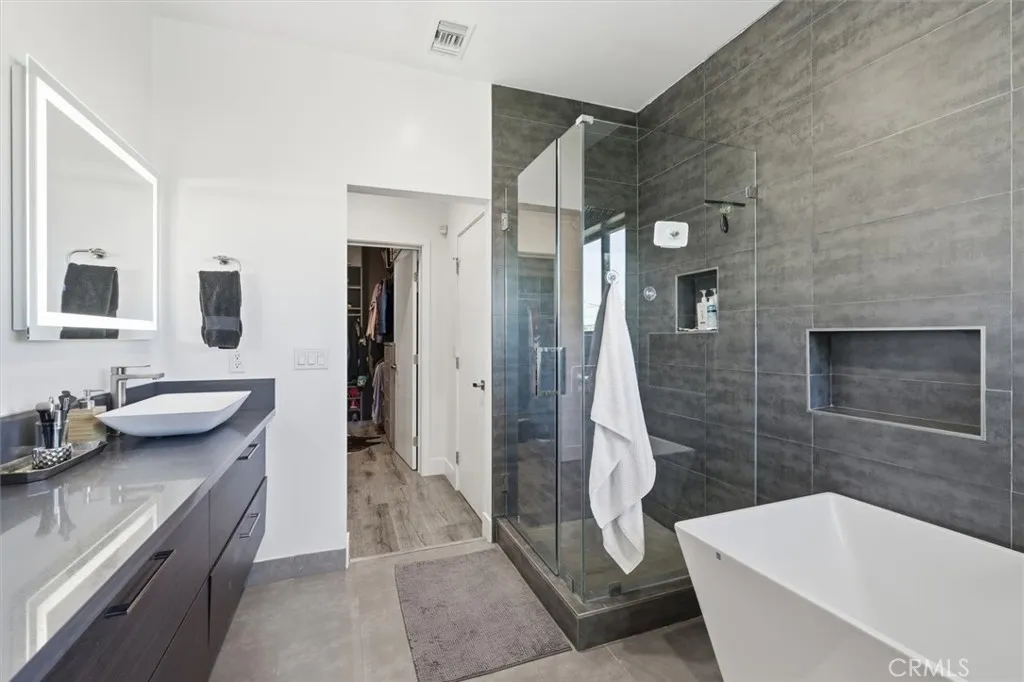 This gorgeous Culver City home is ready for you today. Meticulously crafted in 2017, the thoughtful floorpan and warm, modern finishes optimize natural light and communal space, creating an elegant home ready for you today! Conveniently offered with curated, luxurious furnishings (or ready for your personal furniture, please see private notes for furnished vs. unfurnished pricing) this property will take your breath away. Tucked away on a private street in the adorable and family-friendly Sunkist Park neighborhood, this location boasts an 87 walkscore and offers all the incredible amenities that coveted Culver City offers: excellent schools and city services, hip restaurants and shopping, manicured parks and vibrant nightlife, all just minutes away. The spacious, 2,900 square foot home offers huge windows and outdoor access from nearly every room, giving the space a bright, airy feel. Downstairs, a great room offers extra tall floor-to-ceiling pocket doors, opening to a Brazilian hardwood deck and large, flat yard surrounded by towering privacy hedges, perfect for time with family or entertaining friends. A true chefs kitchen, vaulted ceilings, and a cozy fireplace make the main living space a dream. 4 spacious bedrooms and 4 luxurious en suite bathrooms are perfect for a growing family while still offering space for guests. Upstairs, a thoughtful second living room and private deck offer massive flexibility... a play room for the kids, an office, or just a place to relax. A huge walk-in closet, hard-wired CCTV security system, oversized garage this property has too much to