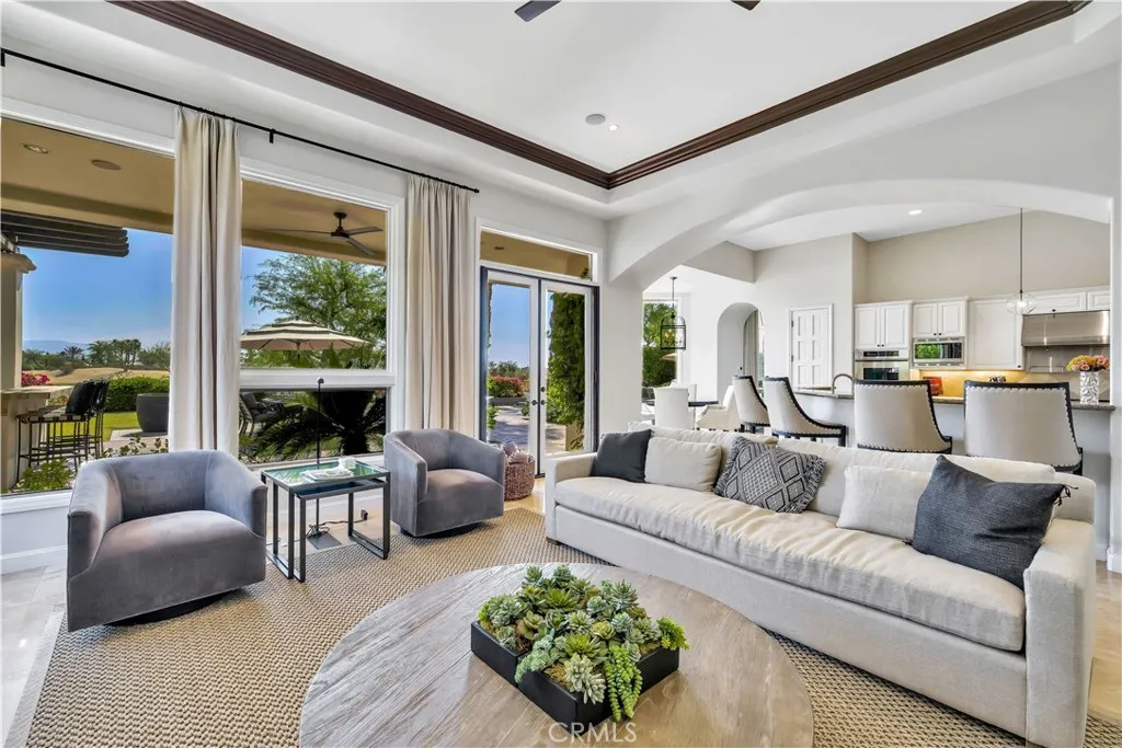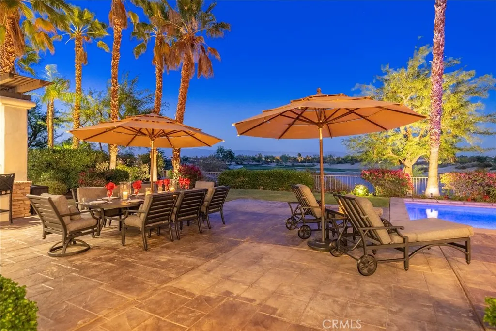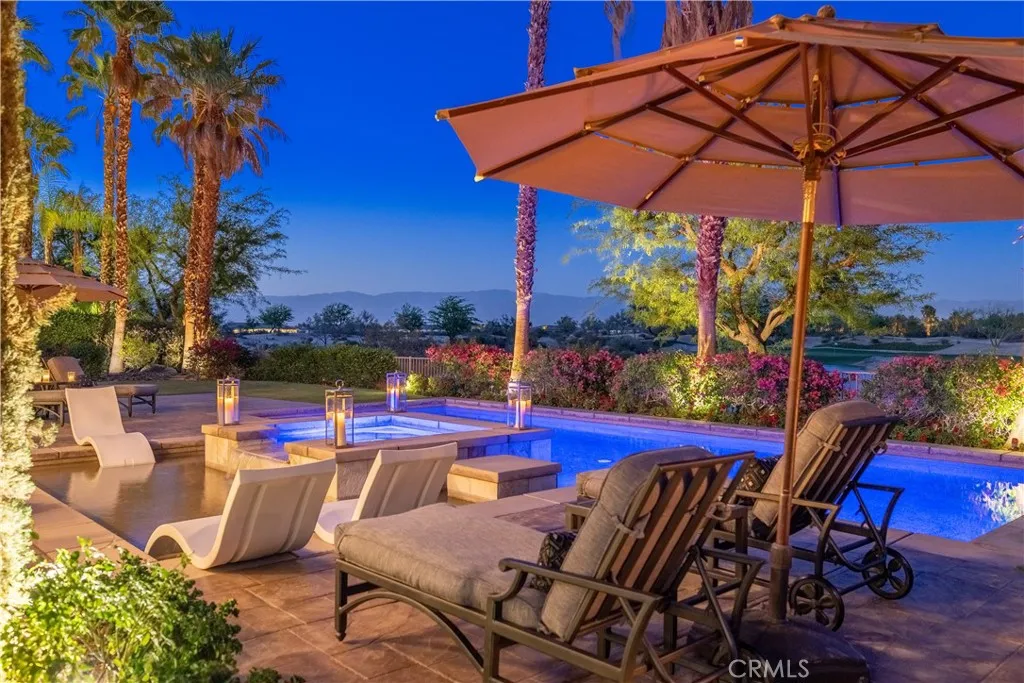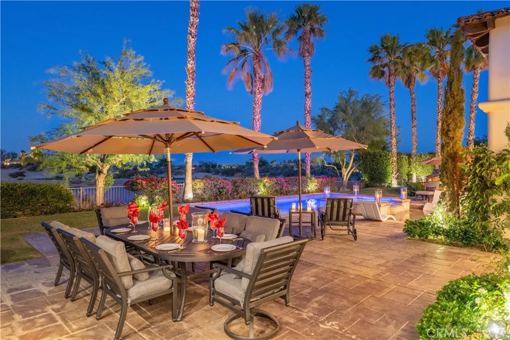 Welcome to St. George Estate, an extraordinary desert escape featured on the Emmy Awardwinning TV show Staycation (CBS & KCAL 9). Designed for the discerning guest, this luxurious residence blends resort-style living with complete privacy, set against the backdrop of the 17th signature hole of the Greg Norman Course at PGA West. Enjoy breathtaking views of the lake, mountains, and golf course from the comfort of a professionally designed 4,700 sq. ft. interior, where floor-to-ceiling windows, travertine floors, and wood-beamed ceilings create a light-filled, sophisticated ambiance furnished with Restoration Hardware throughout. The estate boasts an oversized saltwater pool and spa with a tanning shelf that also serves as a kiddie pool, surrounded by multiple outdoor lounging and dining areas with seating for 810 guests. A built-in BBQ island with bar seating and a custom pergola makes entertaining effortless, while an outdoor fireplace provides the perfect setting for cozy desert evenings. Inside, guests can enjoy a variety of entertainment options including a pool table and foosball, along with thoughtfully curated amenities such as Moulton bath products in every bathroom. The gourmet chefs kitchen is a culinary dream, outfitted with high-end Thermador appliances, dual ovens, a six-burner cooktop with griddle, Sub-Zero refrigerator, wine cooler, and two dishwashers. Whether dining at the ten-seat formal table, gathering in the breakfast nook, or entertaining at the wet bar with mini-fridge and ice maker, every meal becomes a memorable experience. Accommodations include a s