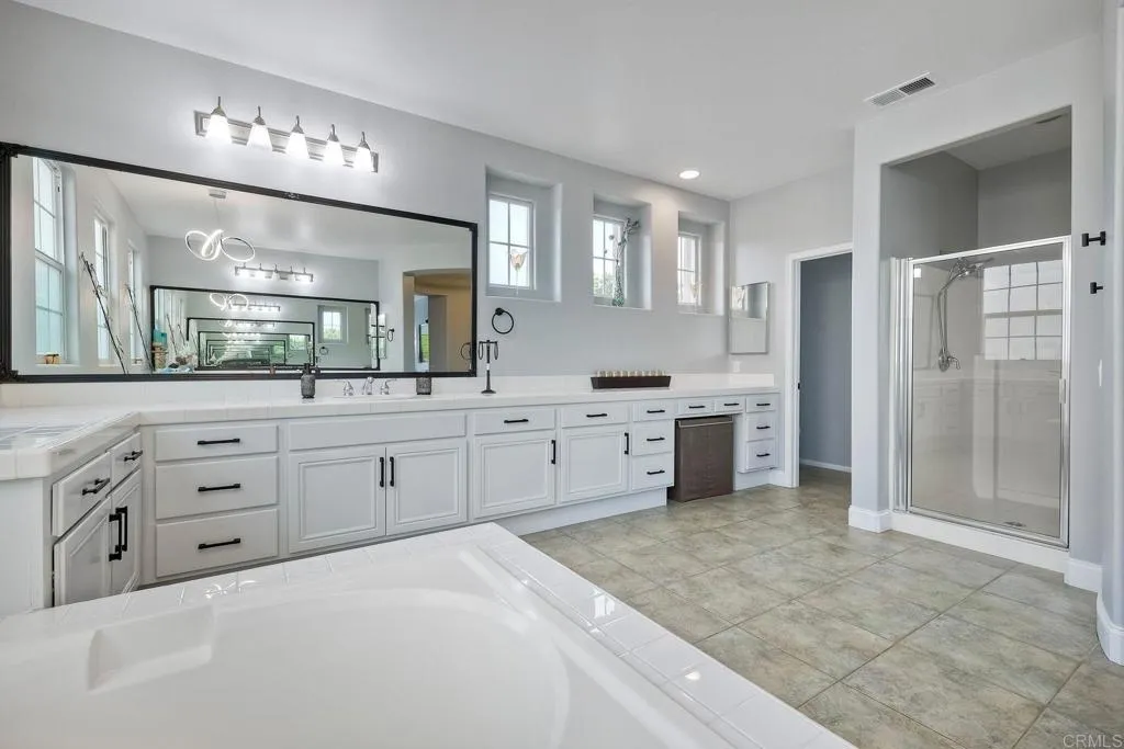 Fully FURNISHED rental with SOLAR and TESLA charger. An ideal location for traveling nurses, medical professionals, executive, or insurance-related relocations or long term tenancy. Stunning 4BD/3BA executive home in San Marcos, gated community, minutes from CSUSM, shopping, dining, and Kaiser Medical Center! Dog friendly! This meticulously upgraded property features an open layout and spacious gourmet kitchen that seamlessly flows into the family room and elegant formal living/dining spaces. You will love the abundance of natural light throughout! One bedroom (with queen bed) and bathroom are on the first floor. On the second floor, you will find a luxurious primary suite that offers a tranquil retreat, while two additional bedrooms share a full bath on the opposite side of the second floor. There is one King bed in the primary and two Queen beds in the extra rooms. Enjoy modern conveniences like an indoor laundry room (washer and dryer included), a 2-car garage, ample storage, and the added perk of a Tesla charging port. Embrace sustainable living with solar, minimizing energy costs! Step outside to discover an enchanting entry courtyard and lushly landscaped backyard and unwind amidst the serene mountain views. Entertain effortlessly on the expansive patio equipped with a built-in grill, refrigerator, gas fire pit, and soothing fountains. Perfect for pet owners, this home is dog-friendly and has a prime location near a community dog park. Revel in the vibrant neighborhood atmosphere while remaining conveniently close to CSUSM, CA-78, shopping, dining, and top-rated restu