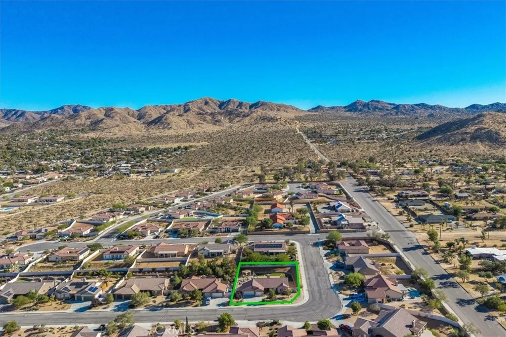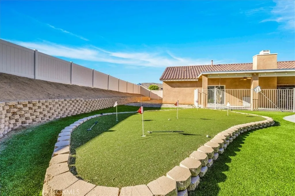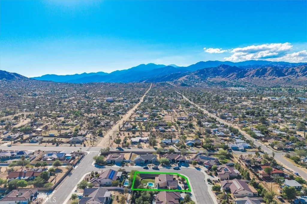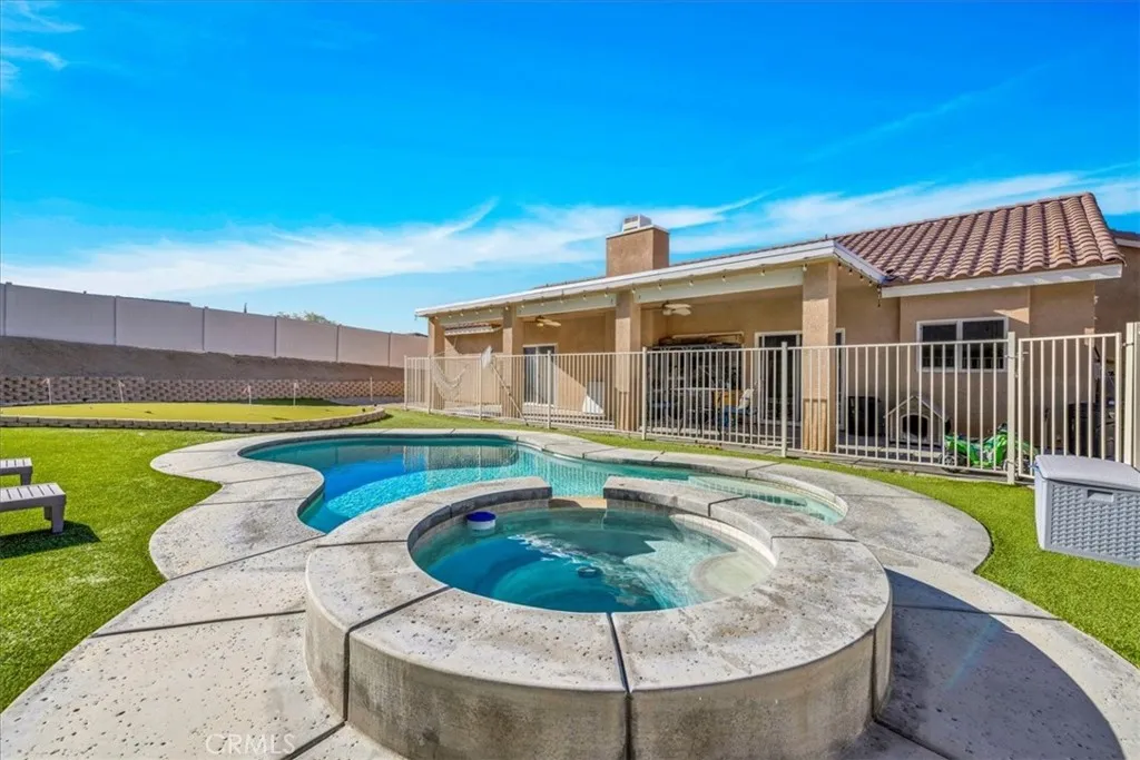 *2-1 BUY-DOWN SELLER CONCESSION* Welcome to 56135 Nez Perce, a stunning turn-key POOL home located in the highly desirable Mesquite neighborhood of Yucca Valley. This beautifully maintained 3 bedroom, 2 bath property is nicely situated on a large corner lot and features 1,764 square feet of living space. As you step inside the bright & airy great room you'll find 10-foot ceilings, earth-toned tile flooring, a lovely gas fireplace and large windows that let in an abundance of natural light. This home's modern style and open-concept layout is one to be desired. The living room flows effortlessly into the dining and kitchen area complete with recessed lighting, upgraded appliances, a center island with beautiful granite countertops and bar seating, ample cabinet & counter space and a walk-in pantry. All bedrooms have carpeted floors & ceiling fans, and the primary bedroom adorns french doors and a sliding glass door that leads to the back patio. The ensuite bathroom is sure to impress with a dual sink vanity, jetted tub, walk-in shower and huge walk-in closet. There is also a convenient indoor laundry room just off the kitchen with a utility sink and additional cabinetry for storage. That's just the inside! The backyard is truly an entertainer's paradise. From the awe-inspiring in-ground pool and spa to the turf putting green, large covered patio with ceiling fans, stucco pergola, Vinyl privacy fencing and ample space for BBQs and get togethers, it's like having a little resort right outside your back door. Not to mention the oversized 3 car garage, low HOA and close proximity