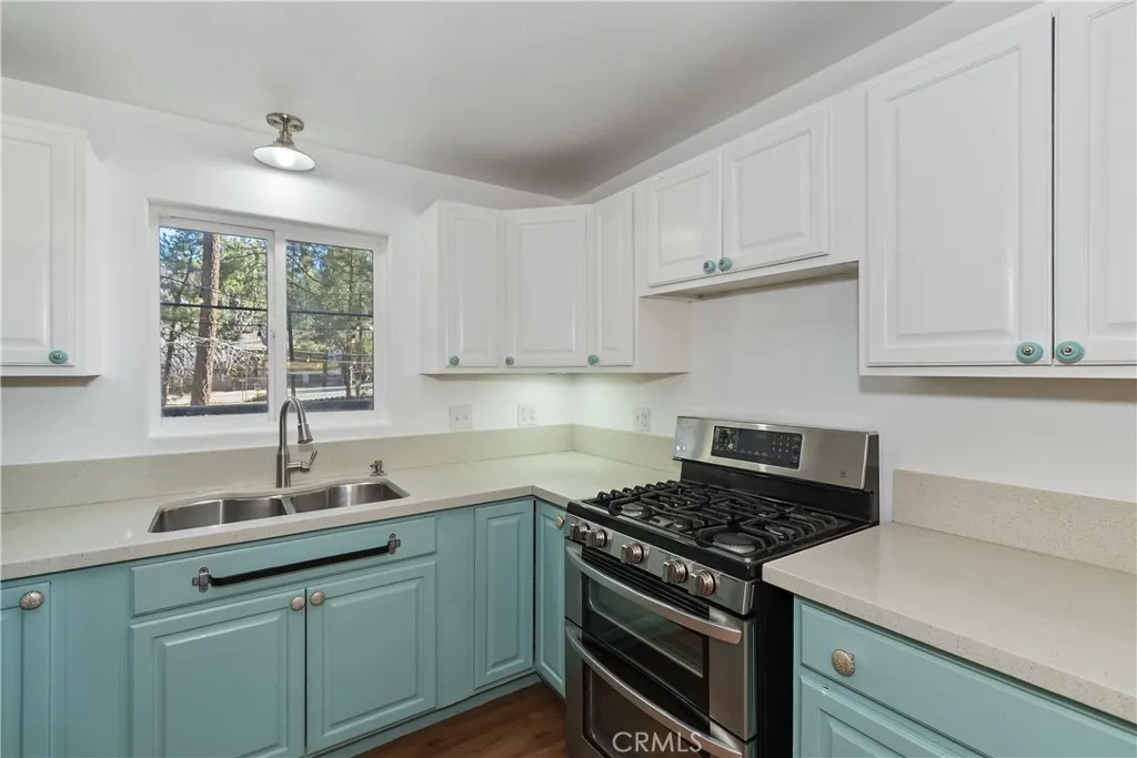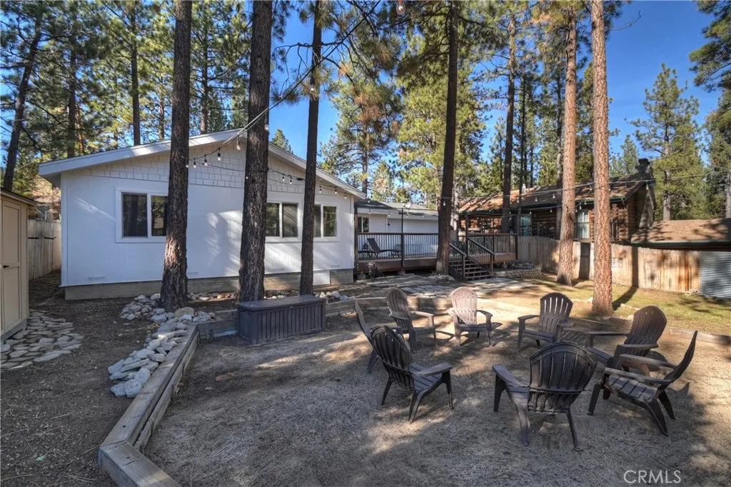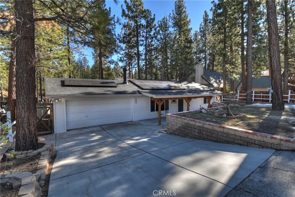 Welcome to 565 Golden West Dr Your Summit Estates Escape Awaits ~ This Single-Story home features 4 bedrooms and 2 bathrooms ~ Walking distance to Snow Summit ~ Great proximity to local amenities, recreation, and the natural beauty throughout Big Bear (hiking trails, 2 ski resorts, Big Bear Lake, and more) ~ Solar Panels are paid for no lease here ~ Dual pane vinyl windows ~ Covered front porch ~ Entire home is clad with James Hardie fiber cement siding and trim that is non-combustible, and resists damage from moisture and pests ~ Wood Stove Insert at tiled fireplace in the living room ~ Laundry closet in the hallway ~ Ceiling fans in all bedrooms ~ Central heat ~ Upgraded Kitchen with stainless steel appliances, upper and lower cabinets, and quartz countertops and backsplash ~ Kitchen is open to the dining area ~ The bedroom with ensuite bathroom are handicap accessible, with walk-in shower and fold-down seat, a wheelchair accessible sink, and grab bars ~ The guest bathroom that is shared with the master bedroom has a cast iron tub, with tub-to-ceiling tile and niches ~ Heat fans in both bathrooms ~ Step out back to the elevated and expansive composite rear deck with storage bin ~ Deck was built to support a hot tub ~ With no neighbor behind you currently, people watch from your deck, as skiers, snowboarders, and mountain bikers alike make their way up Summit Boulevard to Snow Summit ~ Take the composite steps down off the deck to the fully fenced backyard, complete with bistro lighting and an additional storage bin, and 2 sheds ~ Whether youre seeking a full-time reside