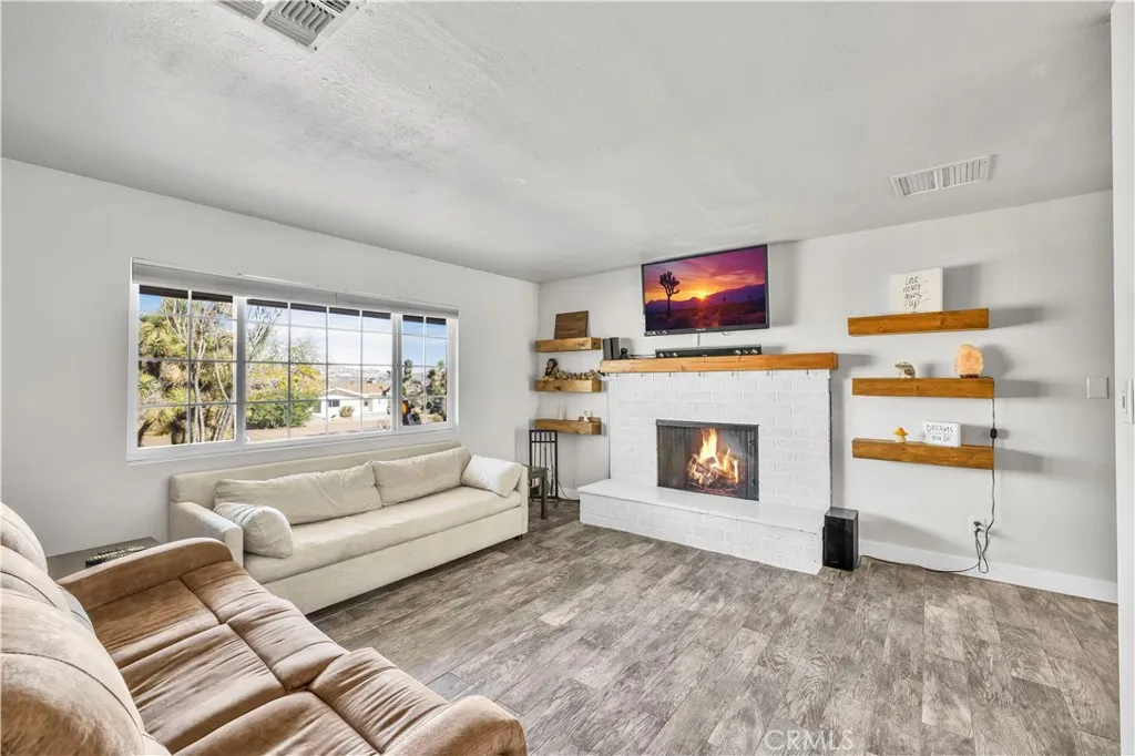 Affordable 4 Bedroom, 2 Bathroom Home with Potential FIFTH BEDROOM on Nearly Half an Acre in Central Yucca Valley! This spacious and well-maintained home offers unbeatable value with 4 bedrooms, 2 bathrooms, plus an additional room with a closet that can easily function as a FIFTH BEDROOM. Located in the heart of Yucca Valley, this property sits on just under a half-acre lot and features a fully fenced backyard with a convenient drive-thru gateperfect for RV or toy storage. An oversized concrete driveway provides ample off-street parking. Inside, the home boasts a large living room with a cozy wood-burning fireplace, beautiful tile flooring throughout the main living spaces, and luxury vinyl plank in the bedrooms. The kitchen has been fully remodeled and features custom finishes including a stunning countertop-to-ceiling backsplash, stainless steel appliances, ample cabinetry, and generous counter space. The spacious primary bedroom offers dual closets and privacy, being located far from the other bedrooms. Both bathrooms have been updated with beautiful new tile and finishes. All secondary bedrooms are generously sized, and the home offers additional hallway and linen closet storage. This property is equipped with dual cooling, offering both central HVAC and a ducted evaporative cooler to help you stay comfortable and energy-efficient year-round. There is also an affordable solar power purchase program, making the electricity more affordable. This home even features an attached 2 car garage with laundry hookups. Out back, youll find a large covered patio and a flat, usable