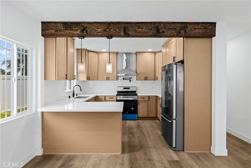 Beautifully renovated home in the desirable Jurupa Valley area! This property features an open-concept layout with a bright living space that flows seamlessly into the modern kitchen. The kitchen showcases stylish cabinetry, sleek quartz countertops, stainless steel appliances, a contemporary range hood, and a convenient breakfast bar perfect for casual dining or entertaining. The interior is enhanced with recessed lighting, fresh paint, and elegant wood-style flooring throughout, creating a warm and modern atmosphere. Decorative exposed wood beam accents add character and charm while complementing the clean, contemporary design. This home has been extensively upgraded and rebuilt with major improvements throughout, including all new copper plumbing, all new electrical wiring, new insulation, new windows, new stucco, a brand-new roof, and a new water heater. The property also features energy-efficient mini-split systems for modern heating and cooling. In addition to these major system upgrades, the home has been fully cosmetically renovated with high-quality finishes. Taken down to the studs and thoughtfully rebuilt, this home offers the feel of a brand-new property while maintaining its original charm. The layout provides comfortable living spaces and generously sized bedrooms filled with natural light. Whether you're a first-time buyer, looking to downsize, or searching for an excellent investment opportunity, this beautifully updated home is must-see. Dont miss your chance to own this stylish and turnkey property in a growing Jurupa Valley neighborhood!