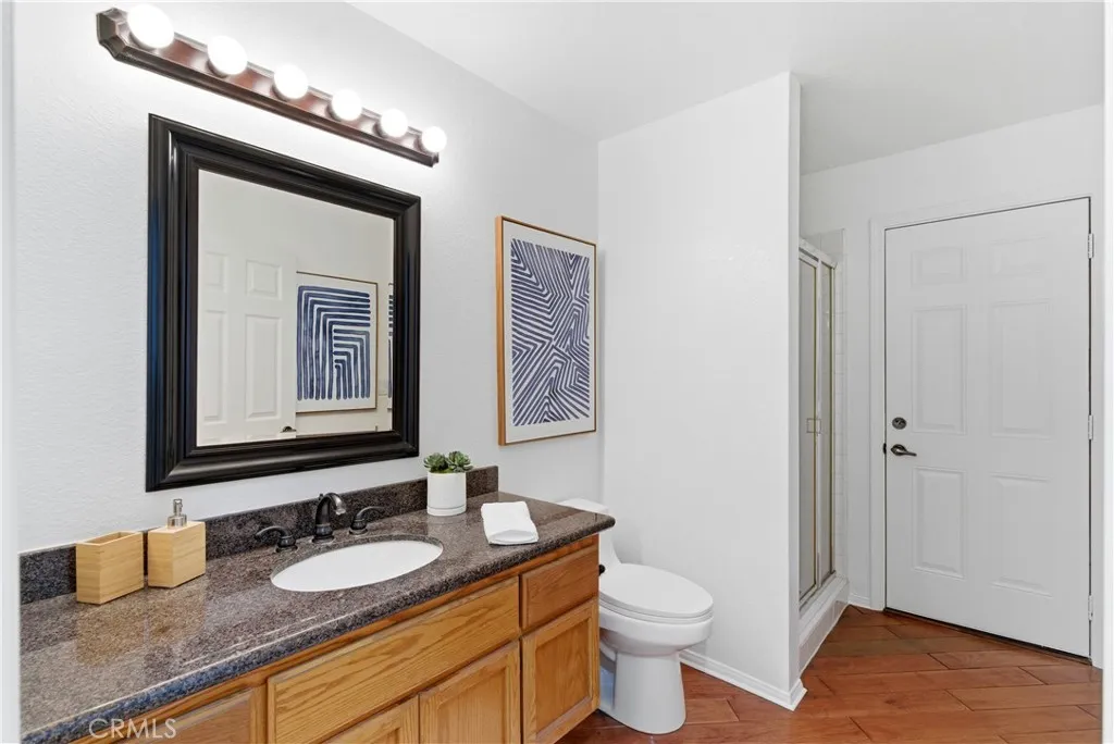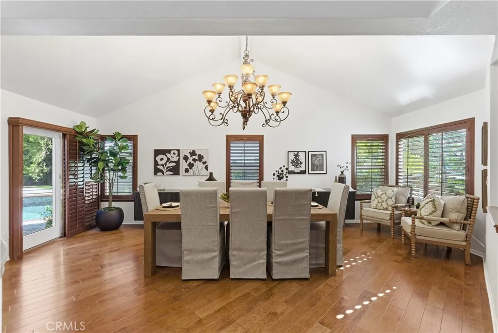 Private swimming pool and spa oasis in sought-after Terra Linda Estates, Yorba Linda! This spacious, sun drenched single family home offers impressive scale and seamless indoor outdoor flow. A dramatic two-story foyer welcomes you into hardwood floors and a formal dining room with vaulted cathedral ceilings. The open-concept family room connects to an eat-in kitchen with casual dining, walk-in pantry, cozy fireplace, and multiple sliding doors to the backyard. Plantation shutters bathe the interior in natural light. A main level bedroom and full bath with exterior access provide ideal flexibility for a home office, guest suite, or multigenerational living. The main floor also includes the laundry room and access to a large 3-car garage. Upstairs, the luxurious primary suite features soaring vaulted ceilings, a generous walk-in closet, private sitting area with bay window, and a two-sided fireplace shared with the spa-like primary bath (soaking tub, separate shower, double vanity). Two additional bedrooms with high ceilings and ceiling fans share a convenient Jack-and-Jill bathroom. The private backyard haven includes mature palms, lush landscaping, privacy walls, expansive sun-filled patio, grassy lawn, terraced planters, and gated side access to the sparkling pool and spa. Nestled in the small, peaceful Terra Linda Estates community with multiple parks, walking paths, and a tot lot playground with picnic tablesall minutes from shopping, restaurants, top-rated Yorba Linda schools, and easy freeway access. This home combines generous space, comfort, and an unbeatable neighbo
