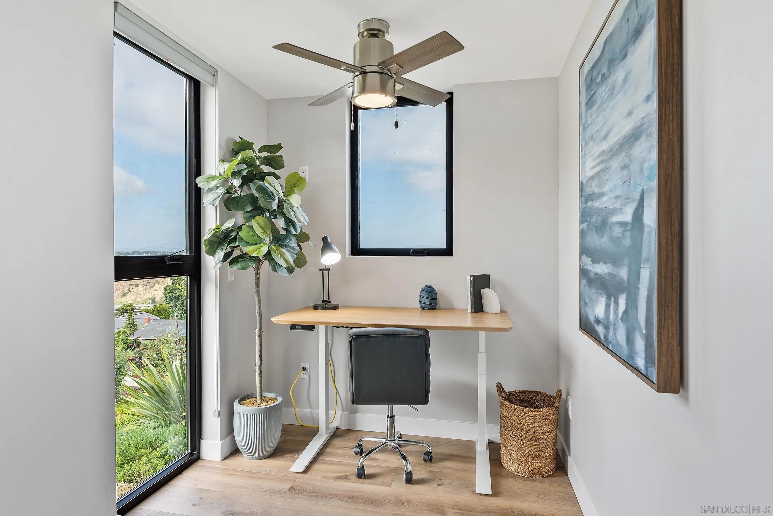 FURNISHED MIDTERM RENTAL — Designer Canyon House in La Jolla Experience elevated coastal living in this newly built modern 3BR / 2BA ADU with breathtaking canyon and skyline views. Thoughtfully designed by Suzanne Brown Designs, this elegant two-story home combines high-end finishes with comfort and functionality—perfect for extended stays, relocations, or remote professionals. Main living area features open-concept flow, abundant natural light, and sliding doors to a serene backyard with firepit lounge seating. Gourmet kitchen includes stainless steel appliances, full fridge/freezer, and dining table for four overlooking the canyon. Downstairs bedroom/TV room offers a king sleeper sofa with barn-door privacy, flat-screen TV, and full bath nearby. Upstairs, a loft office provides a dedicated workspace. Two additional bedrooms share a Jack-and-Jill bath with modern glass shower. Primary suite features a king bed, mirrored closet, and panoramic canyon-to-city views; guest bedroom includes a queen bed and walk-in closet. Additional highlights: full-size washer/dryer, stylish furnishings, and convenient location minutes from La Jolla beaches, shops, dining, and downtown San Diego. Sleeping Setup (max 6): BR1 King • BR2 Queen • BR3 King Sleeper Sofa • 2 Baths Rates reflect short-term rental pricing and vary by season and length of stay. Published amounts are estimates; final pricing, fees, and availability are subject to change until a signed agreement. Please inquire for an exact quote.