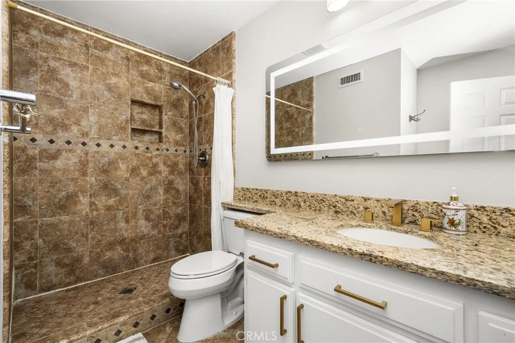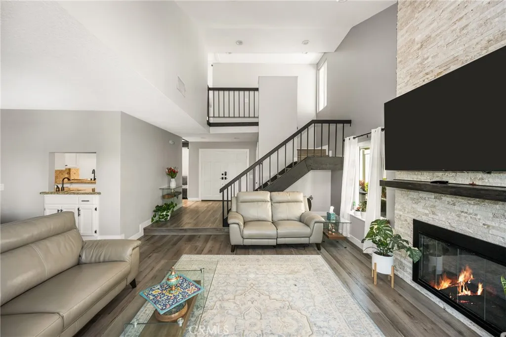 Welcome to 5889 E Mountain Loop Trail, a truly remarkable townhome nestled in the heart of Anaheim Hills. This stunning residence offers a perfect blend of comfort, style, and breathtaking views. With 3 bedrooms, 2.5 bathrooms, and 1,831 square feet of beautifully designed living space, this home provides an abundance of room for both relaxation and entertaining. Upon entering, you'll be immediately enchanted by the sweeping vistas that surround the home, creating a peaceful, serene atmosphere. The lower level features a chic remodeled half bath, complete with modern fixtures and elegant finishes. The kitchen is a chefs dream, equipped with high-end Bosch appliances and gorgeous granite countertops. It opens effortlessly to the spacious family room, where soaring ceilings enhance the sense of openness and light. Whether you're cooking or hosting, this space is perfect for creating memorable moments. The inviting living room, with its sliding doors that lead to the backyard, offers an ideal spot to enjoy the stunning views. A formal dining room provides an elegant space for dinner parties or special celebrations, making entertaining a breeze. Upstairs, youll find two generously sized bedrooms that offer both comfort and privacy, sharing a sleek, well-appointed bathroom. The master suite is truly a retreat, featuring vaulted ceilings that elevate the room's airy feel, a relaxing soaking tub for unwinding, and dual sinks for added convenience. Its the perfect sanctuary to escape and recharge after a busy day. Additional features of this exceptional home include a two-car garag