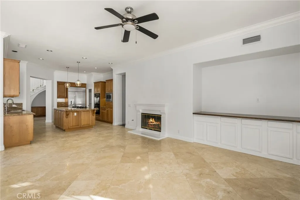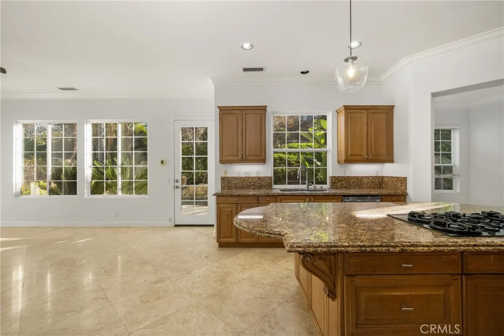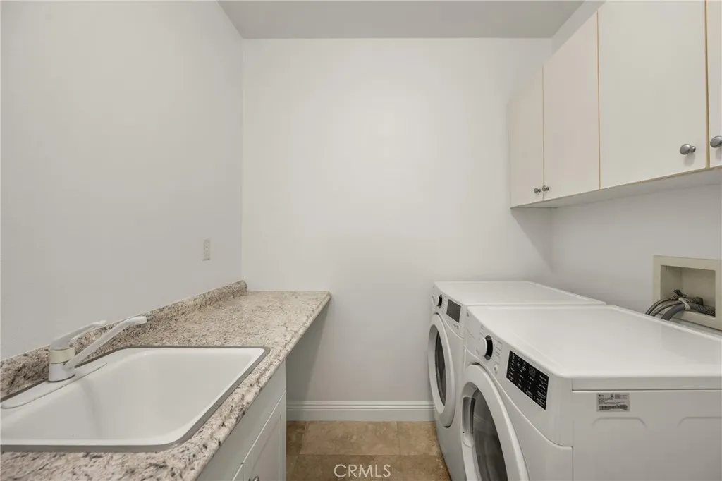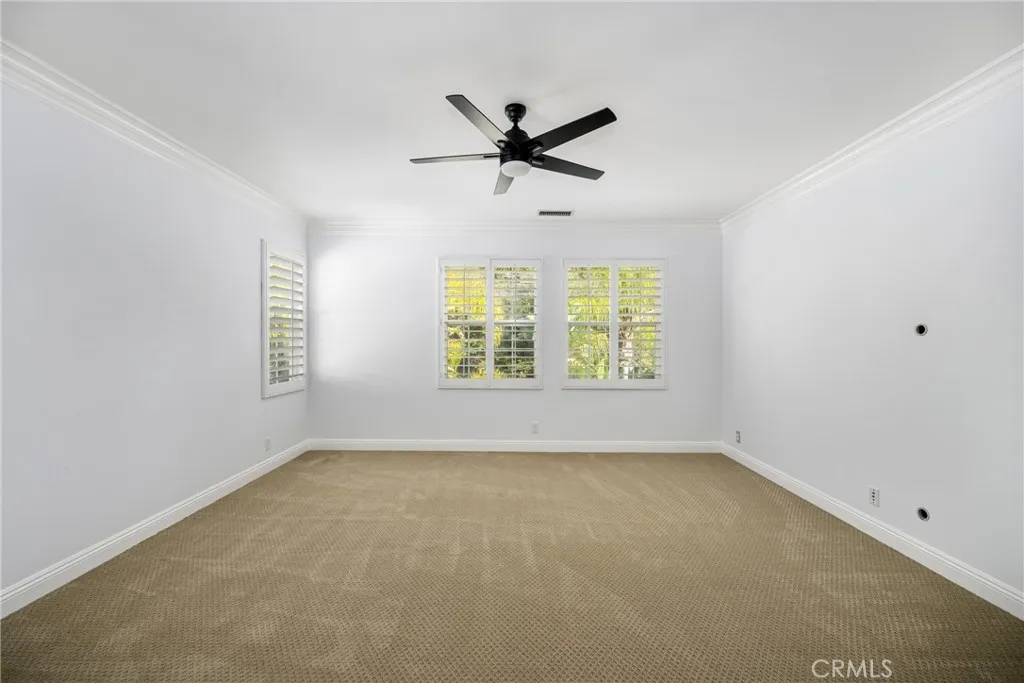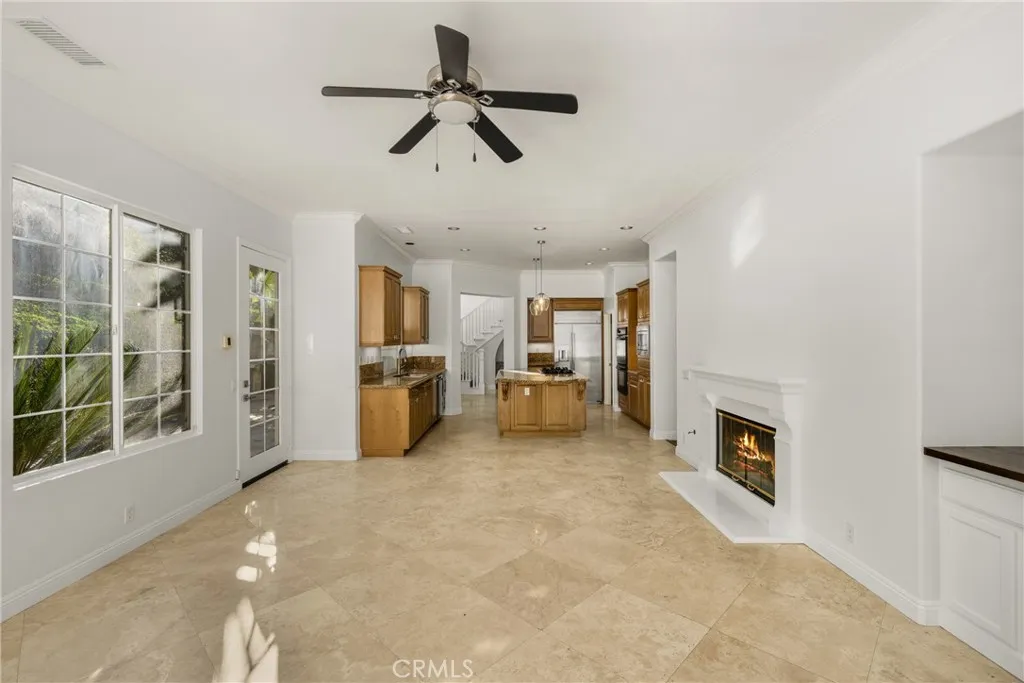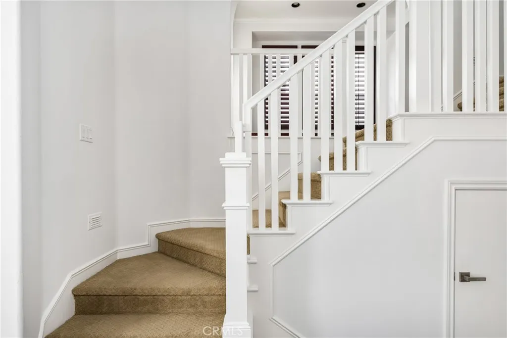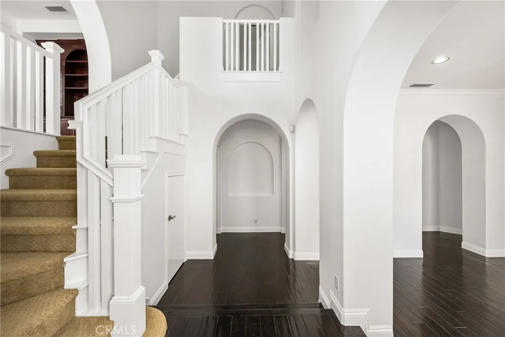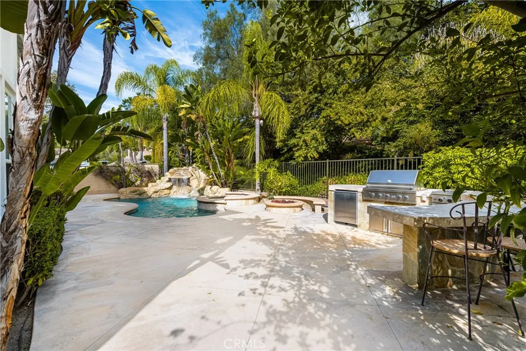 Tucked into a quiet cul de sac street in the picturesque community of Oak Knoll in Ladera Ranch, this luxurious 5-bedroom pool home offers the epitome of South Orange County living. With its stunning curb appeal, meticulously updated glam interior, and a backyard oasis, this home embodies the perfect blend of comfort, style, and relaxation. Greeting you with soaring cathedral ceilings, welcoming archways and a formal living room, you'll have plenty of space to live, entertain and relax graciously. You'll find a dedicated lofted office space complete with cherry built in cabinets and plantation shutters off of the formal entry. The first level also boasts a private, tucked away bedroom suite, laundry room and direct access to the two car garage. From the formal dining room adorned with crystal chandelier and sconces, the kitchen is a chef's dream with GE Monogram appliances including a stainless steel refrigerator, double ovens, integrated microwave and cherry cabinets. A walk in pantry makes staying organized a breeze! The kitchen flows seamlessly into the open concept living space, which also features a built in desk creating the perfect second office space or homework zone. Dual staircases lead up to the four remaining bedrooms. The primary suite features a jetted tub, dual walk in closets as well as dual vanities. Outside, you'll find a massive rock pool with water slide, integrated spa and outdoor BBQ grill for year round entertaining and dining al fresco. The location is unbeatable with easy access to the 5 freeway and 241 toll road. The property is also zoned for awar
