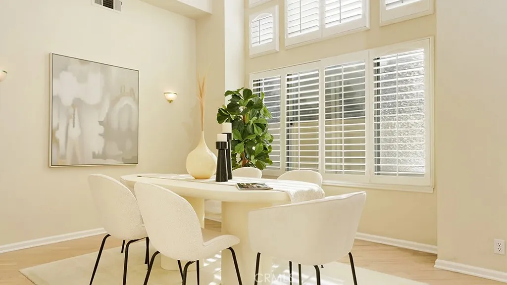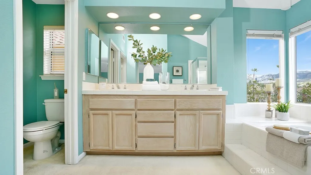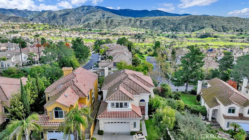 Enjoy panoramic hillside and mountain views from the kitchen, in-kitchen dining area, family room, backyard and primary bedroom with ensuite in this 4 bedroom, 3 bath, 2,619 square foot home on a 5,040 square foot lot. Located within the prestigious, 24 hour guard gated community of Dove Canyon at the end of a cul-de-sac with no neighbors behind and only one neighbor to the north side, the home offers an ideal combination of security and privacy. Enter through the double door entry to a voluminous great room with two story ceilings and a wall of windows along the south wall that let in plenty of natural light year round. The great room space is currently set up as a living and formal dining area. Views through the windows on the east facing walls of the kitchen, in-kitchen dining area and family room create sight lines between the interior and backyard ideal for transitions between indoor and outdoor entertaining. The double doors off the family room lead to a serene backyard that is tastefully landscaped to accommodate outdoor seating as well as a grassy area to the side. The remainder of the downstairs features an interior laundry room with utility sink, guest bathroom with step in shower and a bonus room that is currently staged as a bedroom. A spacious primary bedroom with vaulted ceiling, ensuite and large walk-in closet awaits upstairs. The primary bedroom's ensuite features a dual vanity, separate soaking tub with views and a step in shower. On the other end of the upstairs are two secondary bedrooms with a shared jack and jill bathroom. The end bedroom has a tray ce