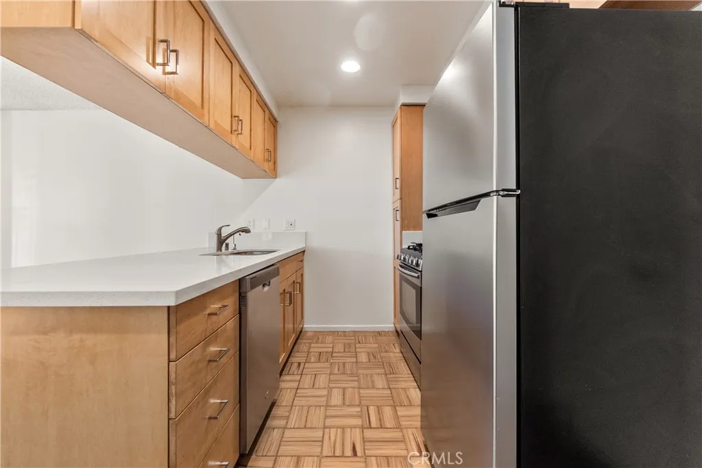 This Hermosa Beach Sand Section 2-bedroom, 2-bathroom corner unit with approx. 900 sq. ft. offers a cool and functional layout in a prime location. With an ocean view balcony, 2 blocks from the sand, moments to Hermosa Beach Pier, local shops, and across the street from the neighborhood favorite Grannys Grocery. INTERIOR FEATURES: Open-concept living, dining, updated flooring in living spaces, and kitchen with ample cabinet space and included stainless steel appliances; Balcony with coastal breezes and view of the ocean, and panoramic ocean views from the rooftop deck. BEDROOM & BATHROOM: Private, well-sized bedrooms with generous closet spaces; En suite bathrooms in both bedrooms. BUILDING AMENITIES: Rooftop deck with panoramic ocean views from Malibu to Palos Verdes; Space for entertaining and relaxing; Coin-operated Laundry. PARKING & STORAGE: Dedicated enclosed 1-car garage space. HIGHLIGHTS: Corner unit; Ocean view balcony, Combination of practical floor plan and updated finishes; Central Hermosa Beach location.
