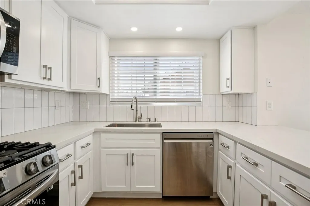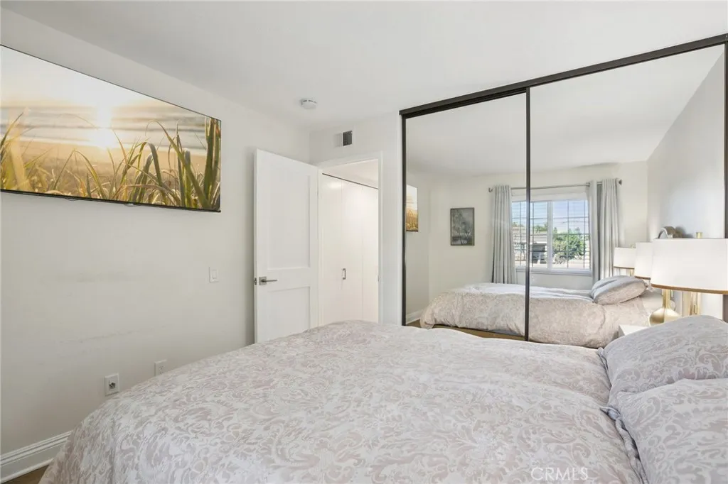 Updated and move-in ready, this 3-bedroom, 2-bath top-floor unit is located in the Woodbridge community of Irvine. The home features an open living and dining area with abundant natural light and elevated views from multiple rooms. The kitchen includes ample cabinetry, modern countertops, and a designated dining space. The floor plan offers two bedrooms, including a primary suite with its own full bath and large closet. A second full bath, in-unit laundry, and a private porch complete the residence. Assigned parking is included. Woodbridge association amenities include lakes, beach clubs, pools, tennis courts, pickleball courts, parks, playgrounds, and extensive walking and biking trails. The property is part of the Irvine Unified School District and offers convenient access to the 405 freeway, shopping, dining, and beaches.