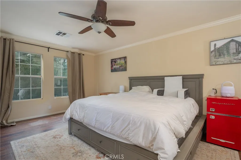 Secluded and private! Welcome to 6143 Wisteria Street, a well-maintained two-story single-family residence located in the desirable Santa Susana Knolls community of East Simi Valley. This home offers 3 bedrooms and 2.5 bathrooms with 1,820 sq ft of living space situated with privacy. The functional floor plan features all bedrooms upstairs, including a spacious primary suite with a walk-in closet and en-suite bathroom complete with double sinks, tub/shower combination, and linen storage. And a quaint Juliette balcony. The main level includes a welcoming living/dining room with fireplace, a very large family room, kitchen, laundry room, and one bathroom on the first floor. The remodeled kitchen is equipped with granite countertops, pot-and-pan drawers, and appliances including a dishwasher, free-standing range, range hood, disposal, and gas water heater. Flooring throughout the home consists of laminate, and tile. Additional interior features include central heating and air, granite counters, french and panel doors, and an individual indoor laundry room. The exterior offers a private backyard with deck, spa and patio areas, wood fencing, and neighborhood and tree/wooded views. A storage shed/garage provides added utility. Located in Simi Valley (has it's own school district) within Ventura County close to shopping, dining, schools, and commuter routes, this home presents an excellent opportunity to own a detached residence in a sought-after neighborhood.