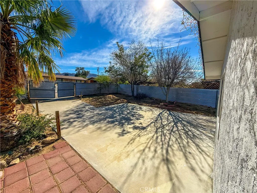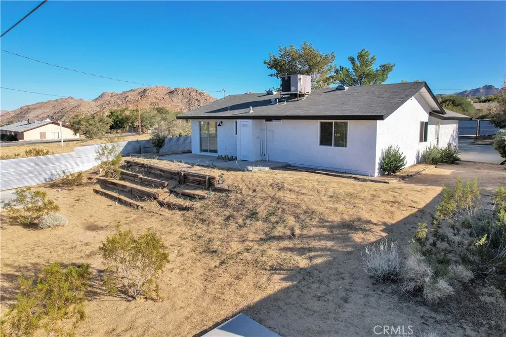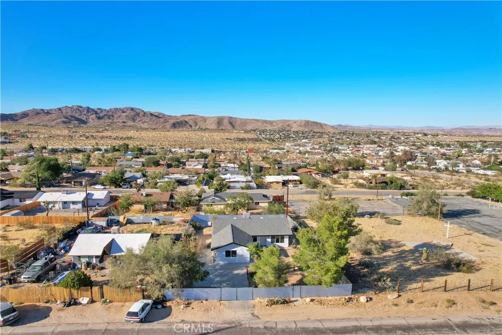Located in the desirable Village of Joshua Tree, this upgraded desert home offers a rare combination of space, flexibility, and lifestylejust minutes from Joshua Tree National Park and popular hiking trails. The property features a 3-bedroom, 1-bath main home plus an attached studio with its own entrance, kitchenette, and full bathroom, creating an ideal setup for guests, creative space, or potential rental use. Inside, the home offers an open-concept kitchen, dining, and living area designed for comfortable everyday living and easy entertaining. Recent upgrades include smooth epoxy flooring, quartz countertops, updated lighting, and central A/C. Step outside to enjoy expansive desert skies, mountain views, and peaceful surroundingsperfect for stargazing, relaxing evenings, and embracing the quiet beauty Joshua Tree is known for. Whether youre looking for a full-time residence, weekend retreat, or investment opportunity, this property offers versatility in a location that continues to attract strong demand. Seller has successfully reinstated the existing loan and foreclosure proceedings have been canceled. Property is being sold traditionally with clear title at closing. Buyer and/or buyers broker to independently verify all information.