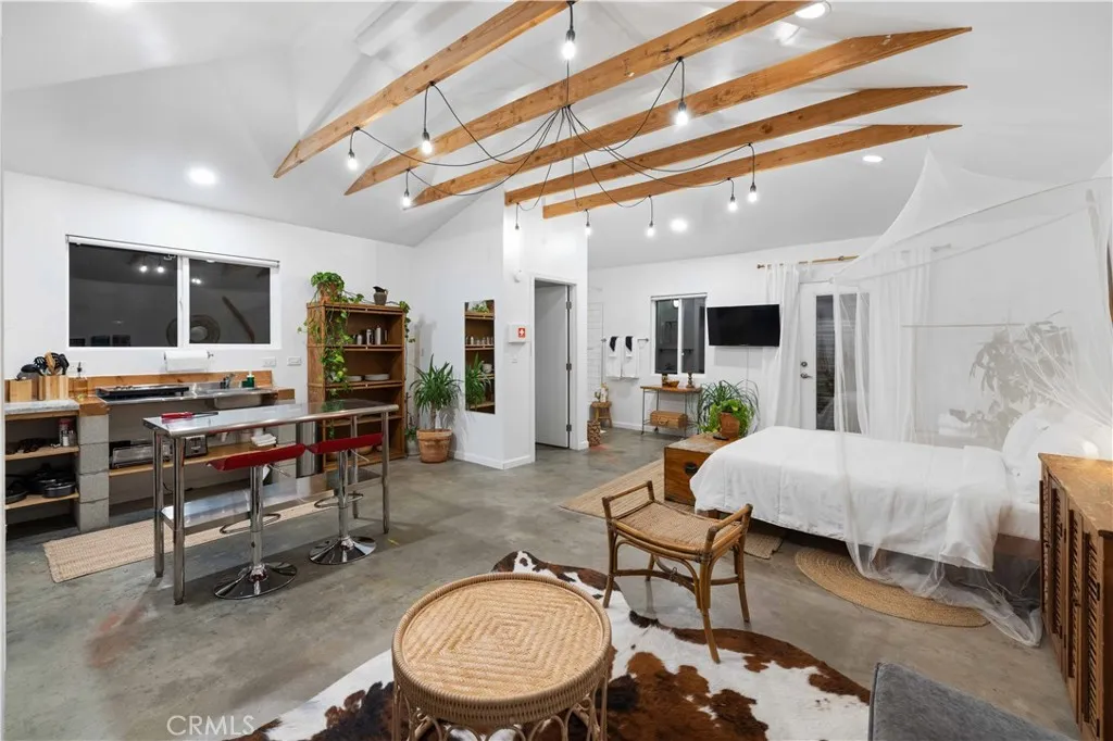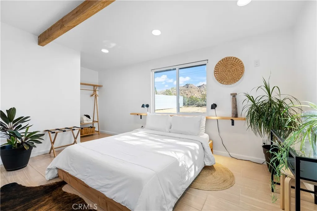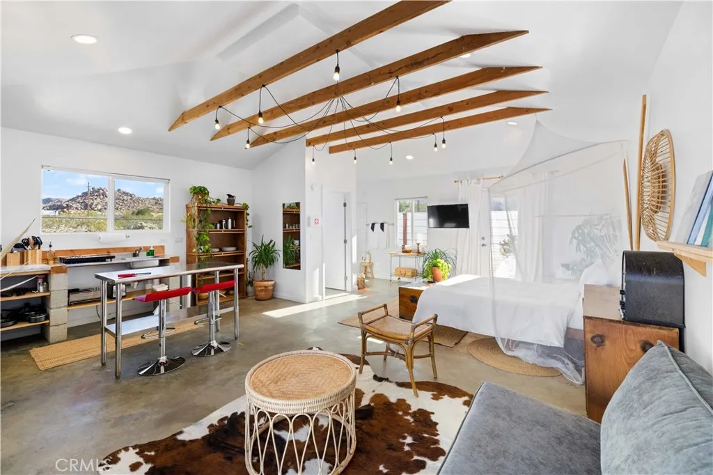 Escape to the Premier Joshua Tree Getaway! This meticulously crafted property in Joshua Tree Village presents two exquisitely renovated bungalows nestled on an expansive private lot, offering breathtaking panoramic views. Step into the main home, Zen, where 2 bedrooms and 1 bath unfold within a thoughtfully designed floor plan adorned with chic tiling throughout. The kitchen, a focal point for gatherings, boasts subway tile, a stainless steel island, a hood, and on-trend masonry accents. Bedrooms are generously sized, featuring recessed lighting and elegant wood shelving. Zen's backyard paradise beckons with BBQ space, pendant lights, a fire pit, and an invigorating outdoor shower. Journey to The Naturalist, the second bungalow, where boulder mountain views captivate. This light-filled space reveals exposed wood beams, concrete flooring, and tasteful decor. The well-appointed kitchen, designed for culinary exploration, showcases a restaurant-quality island, stainless steel appliances, and distinctive shelving. The bathroom indulges in subway tile, rich wood shelving, and contemporary amenities. Among the additional features enhancing this oasis are HVAC, corrugated steel privacy fencing, a mini-split system, dual pane windows, tankless hot water heaters, and convenient washer/dryer units. This property is a rare gem in one of the Hi-Desert's most sought-after locations. Secure your private tour now and immerse yourself in the allure before it slips away. Property only available for visit with appointment.