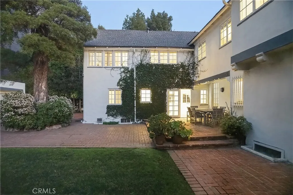 Welcome to a truly special residence that blends architectural charm, modern comfort, and an unbeatable location. If you are looking for plenty of space, inside and out, this is it! This expansive 3,099 sq ft two-story English-cottage style home sits on an oversized 11,137 sq ft lotapproximately a lot and a half compared to most homes on the streetoffering exceptional space, privacy, and outdoor living rarely found in this area. This park-like backyard has been the site of many birthday parties and celebrations over the years! The home is reputed to have been designed by renowned architect Paul Williams and is located within a Historic Preservation Zone, adding timeless character and prestige. Inside, the home is bright, airy, and turnkey, featuring 4 bedrooms and 3.5 bathrooms with an ideal layout for both everyday living and entertaining. You will love the open kitchen featuring a huge center island, high-end appliances plenty of counter space and a breakfast nook. The kitchen overflows into a comfortable family room for after dinner TV, morning coffee or Sunday paper. A downstairs bedroom with ensuite bath and direct outdoor access offers flexibility for guests, in-laws, or a private office. The formal living room showcases wood-beamed ceilings, a decorative fireplace, French doors, and a wall of paned glass opening to the backyard. Nearly every main-level room connects to the outdoors, creating seamless indoor/outdoor California living. Upstairs, the primary suite features two walk-in closets, an additional storage closet, a decorative fireplace nook, and a large ensuit