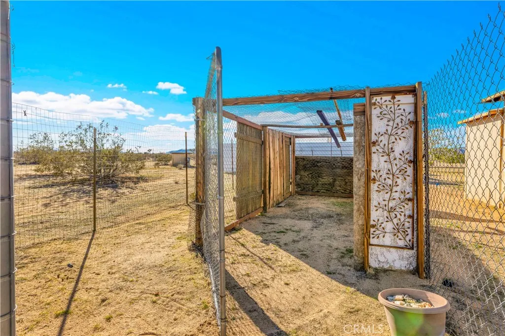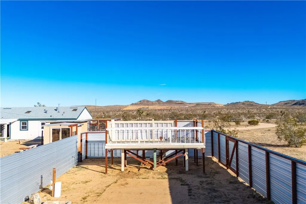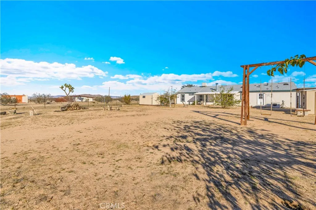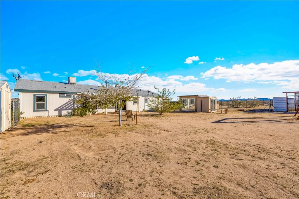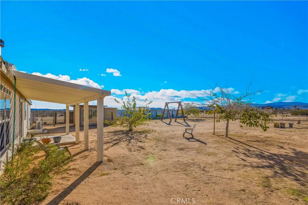 Located off a paved road with an electric gate, this beautifully maintained 4-bedroom, 2-bathroom home sits on just under 5 fully fenced acres and offers the perfect blend of space, comfort, and functionalitycomplete with a private well, dual cooling (evaporative cooler + mini-splits), and plenty of room to roam. As you enter the home, you're welcomed by vaulted ceilings, an abundance of natural light, and a flexible layout ideal for both entertaining and privacy. The massive living spaces include a formal living room, a cozy den with a fireplace, and an open dining area that flows into the oversized kitchen. The kitchen boasts ample counter space, stainless steel appliances, and plenty of cabinetry, all while connecting to the heart of the home. The split floor plan places the primary suite on one side of the home, offering a huge bedroom, walk-in closet, and a private ensuite bathroom with dual sinks, a walk-in shower, and a soaking tub. A custom pet door leads to a fully enclosed outdoor catio, perfect for keeping small pets safe from desert wildlife. On the opposite side of the home, youll find three additional spacious bedrooms, two of which feature walk-in closets, and a guest bathroom with a shower/tub comboconveniently located for easy access. Step out back and take in stunning mountain and panoramic desert views. The backyard features: A large fully enclosed above-ground pool area that has a deck(currently being used as a stargazing deck). Cross-fenced backyard area for more efficient use of space. Fully finished detached shed, ideal for storage, creative space, or