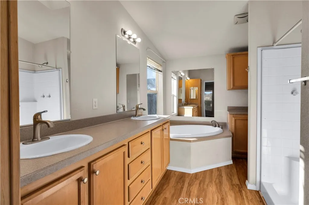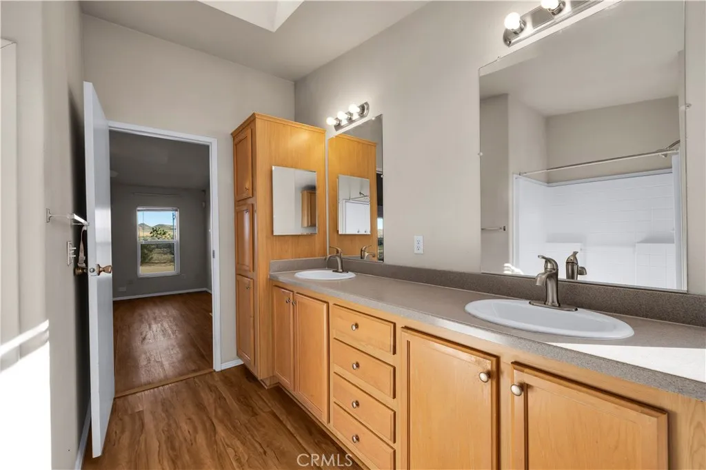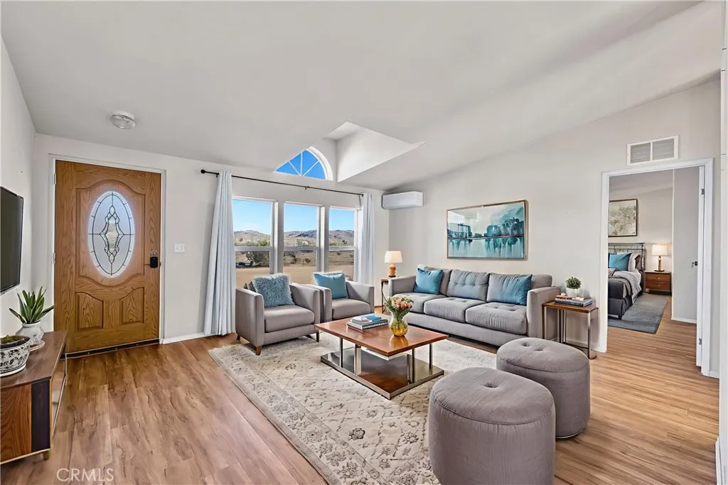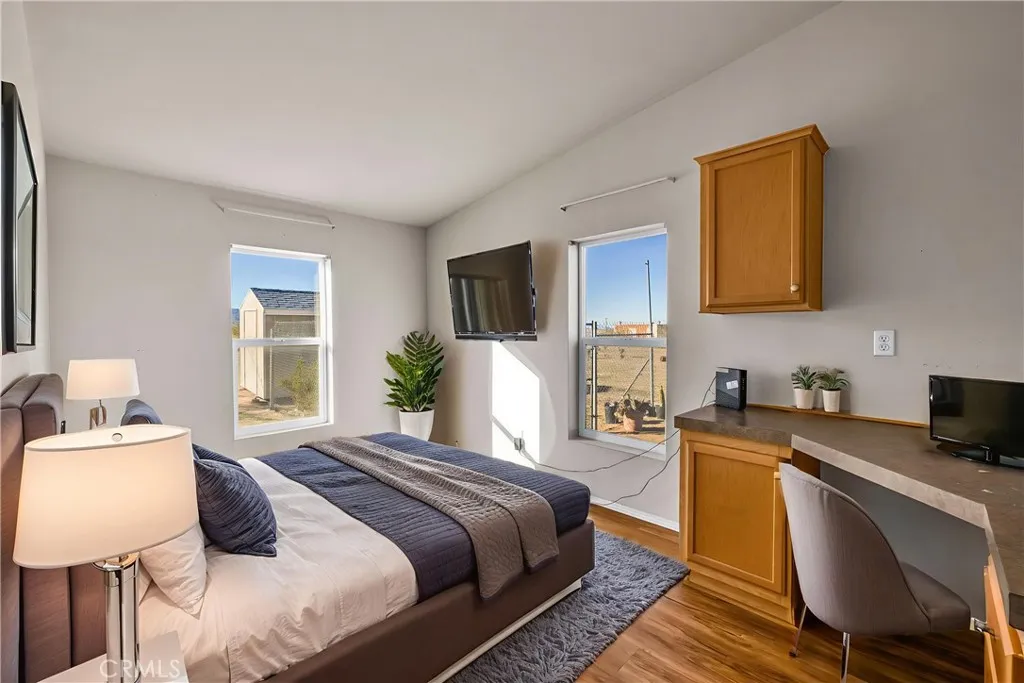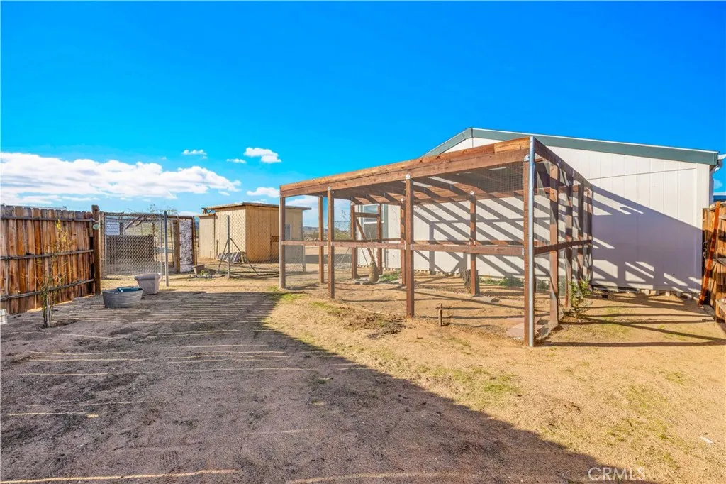 Located off a paved road with an electric gate, this beautifully maintained 4-bedroom, 2-bathroom home sits on just under 5 fully fenced acres and offers the perfect blend of space, comfort, and functionalitycomplete with a private well, dual cooling (evaporative cooler + mini-splits), and plenty of room to roam. As you enter the home, you're welcomed by vaulted ceilings, an abundance of natural light, and a flexible layout ideal for both entertaining and privacy. The massive living spaces include a formal living room, a cozy den with a fireplace, and an open dining area that flows into the oversized kitchen. The kitchen boasts ample counter space, stainless steel appliances, and plenty of cabinetry, all while connecting to the heart of the home. The split floor plan places the primary suite on one side of the home, offering a huge bedroom, walk-in closet, and a private ensuite bathroom with dual sinks, a walk-in shower, and a soaking tub. A custom pet door leads to a fully enclosed outdoor catio, perfect for keeping small pets safe from desert wildlife. On the opposite side of the home, youll find three additional spacious bedrooms, two of which feature walk-in closets, and a guest bathroom with a shower/tub comboconveniently located for easy access. Step out back and take in stunning mountain and panoramic desert views. The backyard features: A large fully enclosed above-ground pool area that has a deck(currently being used as a stargazing deck). Cross-fenced backyard area for more efficient use of space. Fully finished detached shed, ideal for storage, creative space, or