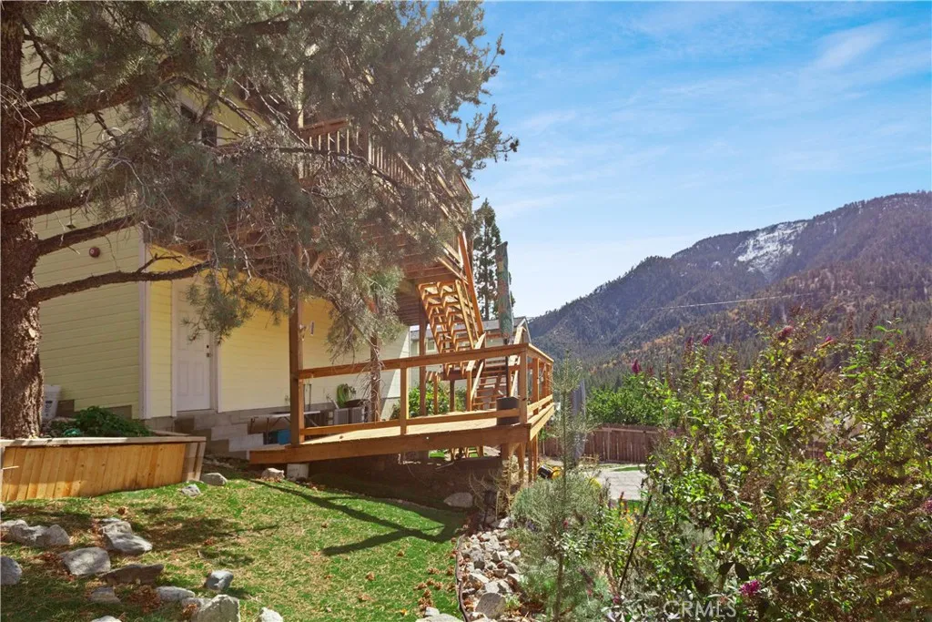 Discover this stunning home on the sunny side of Wrightwood, where the sunlight bathes the property and snow melts quickly away. Nestled on a peaceful cul-de-sac on Apple Vista Drive in the secluded neighborhood located up Rivera Dr. This elevated residence offers breathtaking, unobstructed views of the north facing mountains preserving the snow covered landscape longer than any other part of town. Built in 2007, this spacious 2,631-square-foot home features 3 bedrooms and 3 full bathrooms. The chefs kitchen is equipped with highend stainless steel appliances, a large countertop burner, granite countertops, and custom cabinetry. Ample storage options include a walk-in pantry and utility room, making organization effortless. The main floor boasts an open-concept dining area and living room, centered around a cozy fireplace. The dining space and kitchen overlook Wrightwoods majestic mountains, offering a picturesque backdrop. Multiple decks provide perfect spots to enjoy the crisp forest air and scenic views. Upstairs, you'll find all three bedrooms including the luxurious primary suite. The primary bedroom is a true retreat with a large soaking tub, dual sinks, and an expansive glass shower. The walk-in closet offers plenty of space for your wardrobe. Both the primary and secondary bedrooms feature access to the decks highest vantage points, perfect for soaking in the natural surroundings. The generously sized bedrooms surpass standard expectations, offering ample comfort and space. Dual air conditioning units ensure year-round comfort, even during the warm summer months. On