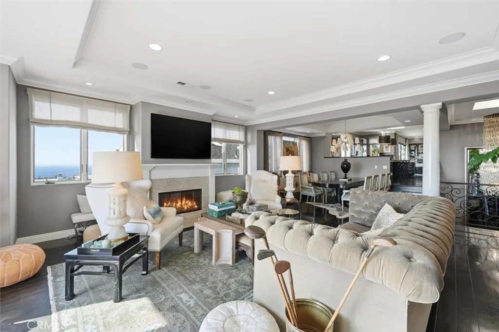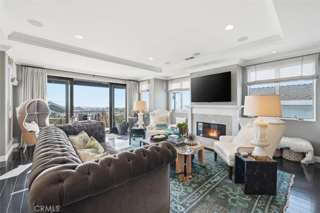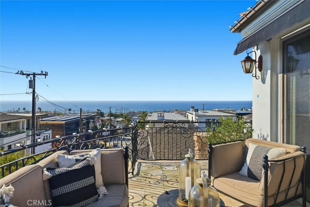 Perched atop Manhattan Beachs coveted Martyrs Hill, 633 12th Street is a stunning Modern coastal residence offering sweeping ocean views and exceptional convenience to downtown shops, restaurants, the Greenbelt, and the Strand. With five bedrooms and six baths spanning approximately 4,819 square feet, this home delivers an elevated lifestyle defined by luxury, comfort, and impeccable design. The thoughtfully crafted three-level floor plan showcases panoramic ocean vistas from the dramatic top floorwhere high ceilings, rich hardwood floors, and abundant natural light set an elegant tone. In addition to views stretching from Palos Verdes to the Santa Monica Mountains, the home captures beautiful sightlines of the Manhattan Beach Pier and the sparkling coastline. Glass French doors open to a private ocean-facing terrace, creating seamless indoor/outdoor living and a front-row seat to unforgettable sunsets. A beautifully outfitted Chefs kitchen anchors the top level, complete with a large island, a 6-burner Viking range with griddle, and generous prep and storage space. Adjacent, a warm and inviting family room with fireplace frames views all the way to Malibu and opens to an additional terrace equipped with a Green Egg barbecue. A chic powder room completes this show stopping floor. The middle level features the tranquil Primary suite with ocean views, a spacious walk-in closet, and a luxurious bath. Two additional en- suite bedrooms and a convenient laundry room are located nearby. The lower level offers exceptional flexibility, featuring a large media or game room, a well-ap
