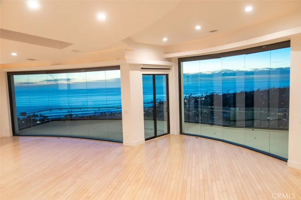 This beautiful contemporary home located in Mystic Hills with stunning panoramic ocean views as well as a sweeping view of downtown Laguna Beach. Soaring ceilings and multiple skylights work together with floor to ceiling glass walls that separate inside and outside living to capture everything Laguna has to offer. An open concept floor plan highlighted by newly refinished maple hardwood floors, fireplace, a gourmet kitchen featuring granite countertops and professional chef appliances. Located downstairs, the primary suite boasts beamed ceilings, an oversized walk-in closet, separate soaking jacuzzi tub, and sweeping beach views from the private deck. Additional bedroom features an on-suite bathroom, walk-in closet, and generously sized loft/office. 3rd and 4th bedrooms feature elevated ceilings, walk-in closets, shared bathroom, and an optional side entrance. Additional family room downstairs has direct terrace access, bathroom, fireplace and is perfect for family movie nights! Further highlights include a 3 car garage, automatic window shades, water softener, and contemporary lighting. This exceptional home sets the bar for what Laguna has to offer, including world class dining, amazing beaches, and a vibrant downtown.