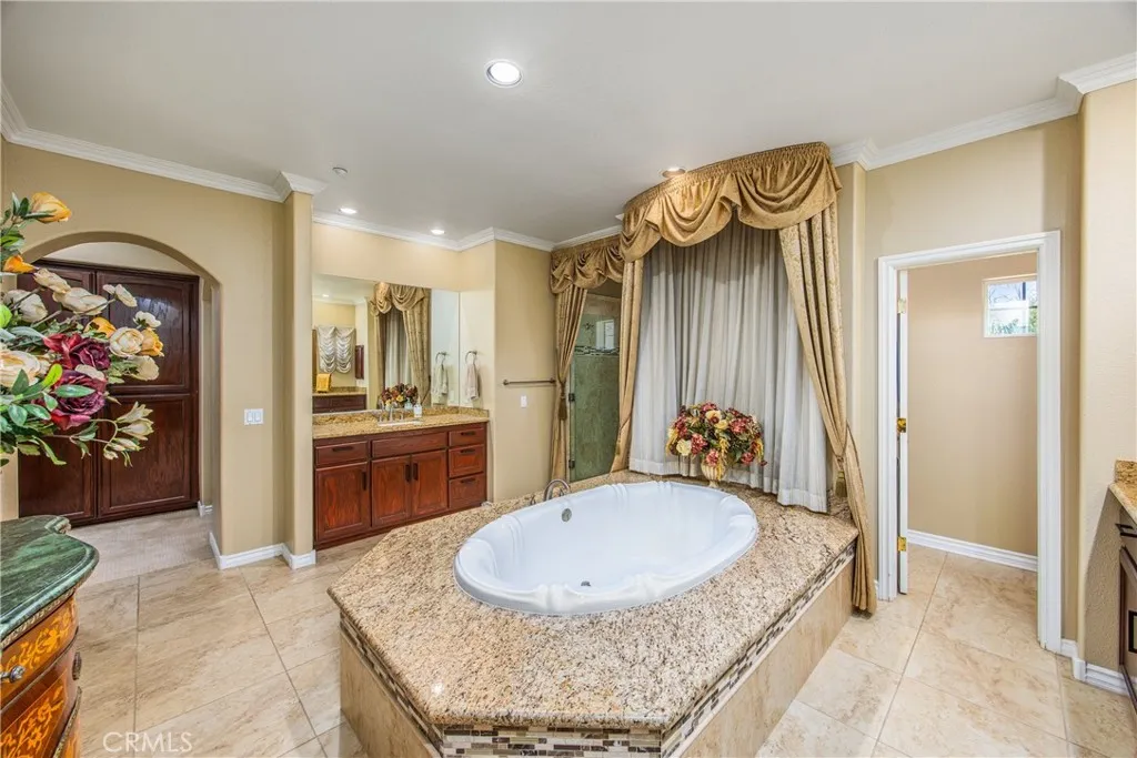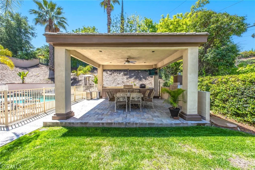 Gated Access, Pool and Cabana. Welcome to your dream home! This beautifully maintained 4,650 sq. ft. custom estate sits on a private half-acre lot behind an electric gated entrance, offering the perfect blend of luxury, privacy, and comfort. Inside, you'll find 5 spacious bedrooms and 5 full bathrooms, each with walk-in closets, providing ample space for family and guests. The home features upgraded cabinetry, granite countertops throughout, new carpet, and fresh paint, making it truly move-in ready. The gourmet kitchen is a chefs dream with a new KitchenAid double oven, JennAir cooktop, wine cooler, trash compactor, walk-in pantry, and plenty of room to entertain. A full indoor laundry room adds everyday convenience. Step outside and escape to your personal staycation haventhis backyard is designed for both relaxation and entertainment. Enjoy a gated Pebble Tec pool and spa with a new heater and pump, or unwind under the cabana, complete with a built-in BBQ, cabinetry, refrigerator, fireplace, and TVperfect for hosting friends or cozy family nights. Other highlights include a full security system with cameras, 3-car garage with built-in cabinets, storage racks, Tesla charging system, and attic storage. The professionally landscaped yard features full irrigation with drip lines, keeping everything lush with minimal effort. This is more than just a homeits a lifestyle.