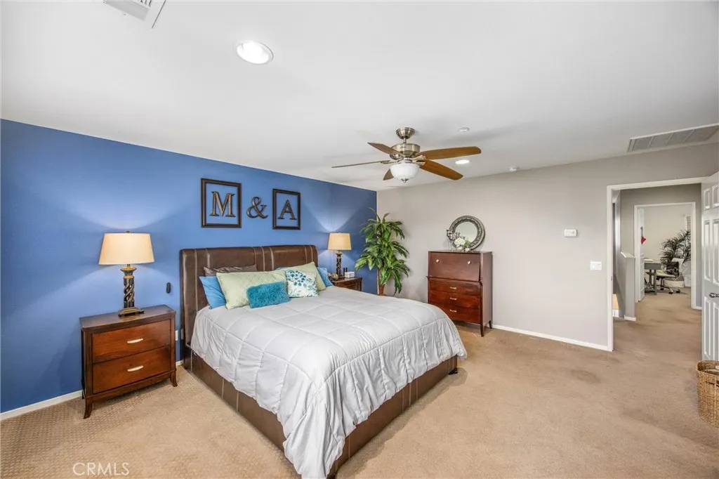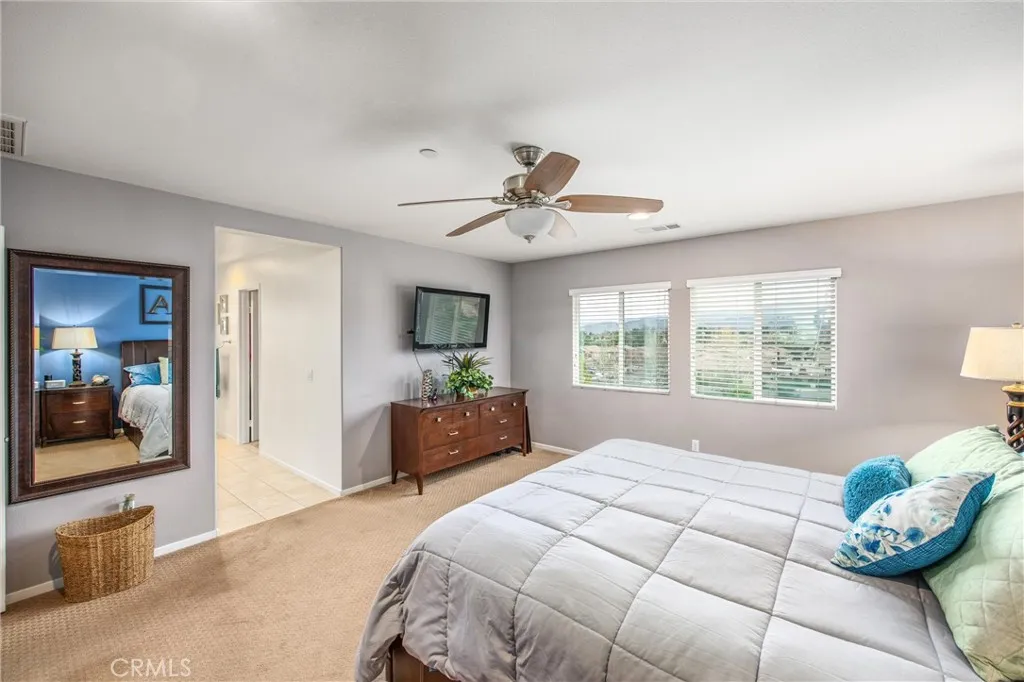 Immaculate and move-in ready, beautifully upgraded JP Ranch home delivers the indoor-outdoor lifestyle buyers loveplus a view that truly steals the show. (Check out all the pictures of the fun HOA amenities.) From the back patio, kitchen, great room, and upstairs primary suite, enjoy sweeping, relaxing mountain vistas, including breathtaking views of Mt. San Gorgonio. With no rear neighbors, your sceneryand your privacyare protected. This home is also within a secure gated community. Inside, the open-concept layout keeps everyone connected. The chefs kitchen flows seamlessly into the great room and features quartz countertops, abundant cabinetry, a separate pantry, and a seller-added designer backsplash with updated lighting. The oversized islandexpanded to double the original builder sizecreates the perfect hub for entertaining, homework, or game night, while a spacious breakfast nook and large dining area make hosting easy. Elegant touches throughout include crown molding, Wainscoting with custom wall trim detail, plantation shutters, and high-quality wood laminate flooring. The home has been thoughtfully improved and meticulously maintained, featuring recent interior paint (downstairs and much of upstairs), an invisible screen door, a tankless gas water heater, a widened concrete driveway, a sprinkler system, and beautifully landscaped front and backyard areas. Step outside under the insulated Alumawood patio cover and unwind year-round, taking in the incredible views. With five bedrooms totalfour upstairs plus a highly desirable downstairs bedroom with its own private b