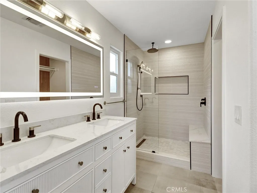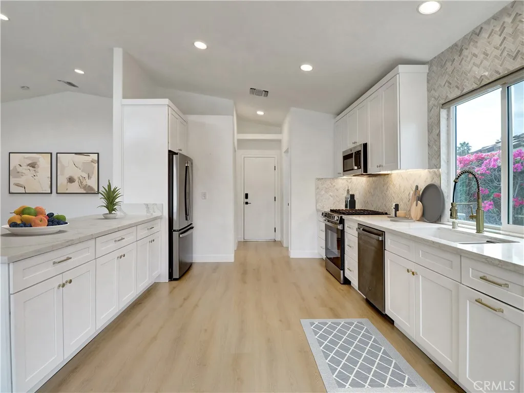 Luxurious 3 bed/2 bath 1623 sq ft designer home on an oversized lot on a quiet cul-de-sac in Cathedral City, just minutes from Palm Springs. Offering privacy, style, and modern comfort, it combines thoughtful design with high-end finishes rarely found at this price. As you enter, youll be stunned by the natural light, vaulted ceilings, and an open floor plan anchored by the gas fireplace with floor-to-ceiling tile. The spacious great room flows seamlessly into the kitchen and dining room, creating light and openness throughout. This stunning 2025 full remodel features all-new kitchen and baths, interior and exterior doors, dual-pane windows/sliders, new tile, remodeled pool/spa and refreshed landscaping, making it a true standout. The expansive kitchen offers white shaker cabinets, Calcutta Queen quartz counters, marble tile backsplash, undercabinet lighting, walk-in pantry and stainless GE appliance suite - gas convection & air-fry range, dishwasher, micro and counter-depth refrigerator. Directly across from the pantry is a separate laundry room, adding convenience and functionality. The primary suite includes recess lighting, modern fan, walk-in cedar closet and coffee bar with extra storage. It also provides direct access to the covered patio/pool area creating a seamless indoor-outdoor retreat. The spa-like primary bath has dual-sink vanity with quartz counter, custom shower with bench, Delta black/gold fixtures with rain shower head/wand. The hall bath is equally refined with designer vanity, Kohler toilet, Delta tub with custom-tiled surround. Two additional bedrooms