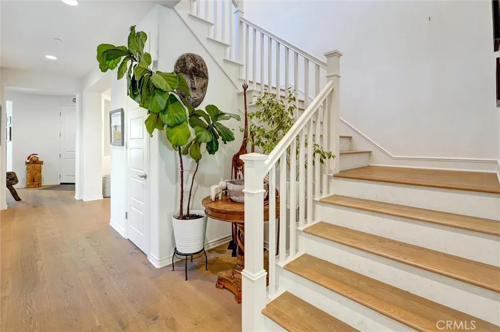 This luxurious home has been thoughtfully upgraded for modern, comfortable living. Located in the prestigious, gated community of Meridian Hills, it sits just minutes from the exquisite Moorpark Country Club. One of the most desirable floor plans in the neighborhood, this residence features a spacious light-filled atriumcomplete with a dog door suitable for small to medium pets. While four bedrooms are located upstairs, a private bedroom with its own full bath is conveniently situated on the main floor, ideal for guests, a housekeeper, or multigenerational living. Rich hardwood floors run throughout the entire home, complemented by custom shutters in most rooms. The serene Primary Suite is a true retreat, offering a spa-like bathroom with soaking tub, oversized shower with upgraded glass enclosure, dual vanities, and two spacious his and hers walk-in closets. The open-concept living area centers around a gourmet kitchen with upgraded countertops and moldings, a large island perfect for gatherings, soft-close cabinetry, and a refrigerator in butlers pantry. The home is also equipped with interior fire sprinklers for added peace of mind. Outdoor living is equally impressive. Three tranquil water features are located in the front yard, atrium, and backyard sitting area complete with a fire pit. The backyard is an entertainers dream, showcasing travertine pavers, a side paver walkways on both sides of the home with circular detail on one side, and a pathway with steps leading to an elevated custom seating area with city views. A custom awning imported from Germany shades the ma