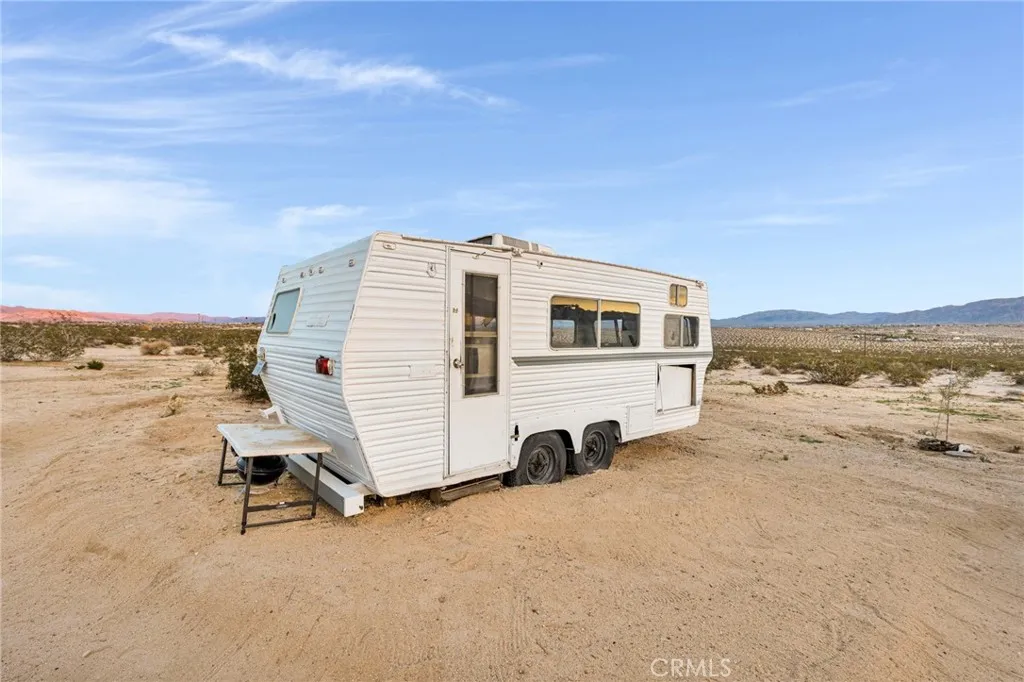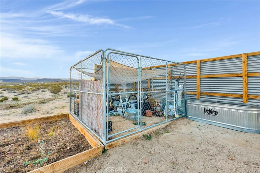 Check out this Rare Desert Opportunity with Utilities in Place! Now is your chance to own a slice of high desert paradise with this unique property offering breathtaking panoramic views that showcase the natural beauty of the Mojave Desert landscape. Key Features: The property currently has a 192 sq ft structure on-site with a sleeping area, a refrigerator, and other personal items. The bonus is the additional electrical and water access already at the property lines. The current owner has begun construction on an outdoor shower for desert living convenience and has installed established gardening areas perfect for sustainable living. The property has a secure dog kennel area for your furry companions to remain safe or this area could also be used as exterior, lockable storage. This hidden gem provides an excellent foundation for those seeking a desert retreat or looking to develop their dream getaway. The hard-to-find combination of electric and water access makes this a standout opportunity, saving you significant time and investment compared to other properties. This property currently has running water through an installed water storage tank, but another attribute that comes with the property is the installed water meter along the properties southern boundary line. The structure, however, is not currently connected to the water meter, but having access to the water grid is still a very valuable asset to have in the area. This parcel is currently zoned as a recreational cabin. Buyers should verify with the local planning department regarding requirements and feasibility