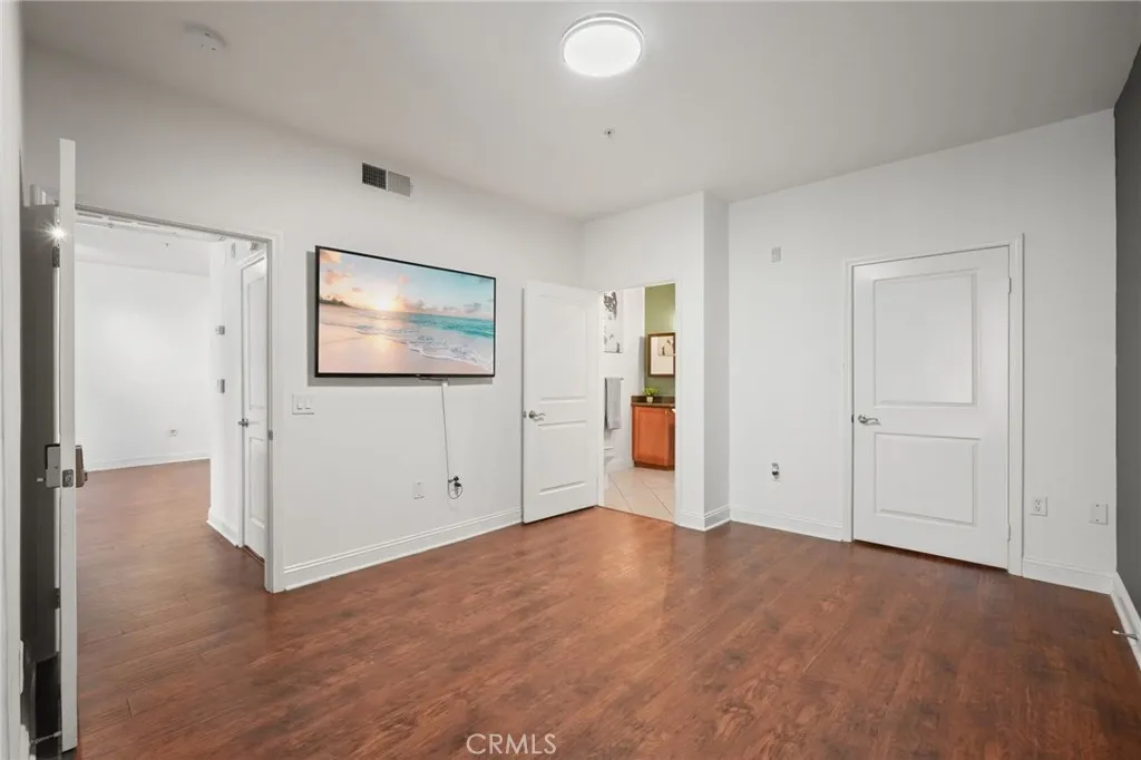 Welcome to this bright and spacious 2-bedroom, 2-bathroom condo located in a secure, Mediterranean-style building in the heart of North Hollywood. This beautifully maintained unit offers an open-concept layout with engineered hardwood flooring and high ceilings. The living room features large windows that fill the space with natural light, along with a sleek gas fireplace that adds warmth and modern appeal. The kitchen is equipped with granite countertops, stainless steel appliances, and ample cabinetry, creating a seamless flow between the dining and living areas. For added convenience, the home includes an in-unit stacked washer and dryer. Both bedrooms are generously sized, and the primary suite features a walk-in closet and an en-suite bathroom with dual vanities, granite counters, and a soaking tub/shower combination. The second bedroom is spacious and conveniently located near the full guest bathroom. The community offers secure controlled access, gated underground parking, a fitness center, and a beautifully tiled central courtyard with seating areas and decorative details. Residents also enjoy access to a rooftop deck with sweeping views of the San Fernando Valley. The HOA includes water, trash, elevator maintenance, and coverage for all building-related issues, leaving the owner responsible only for their electric and gas bills. Located just minutes from the NoHo Arts District, major studios, restaurants, shopping, and freeway access, this move-in-ready home offers comfort, convenience, and modern living in one of LAs most desirable neighborhoods.