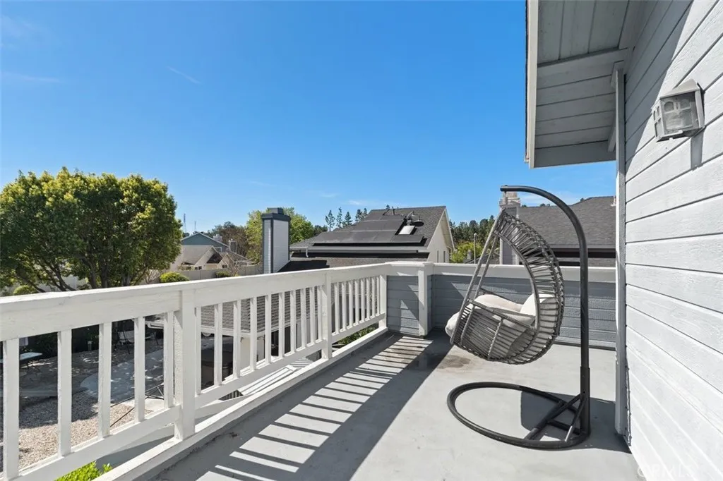 Imagine starting your morning with coffee on your private wrap-around deck overlooking the peaceful cul-de-sac, then ending the evening beside a glowing saltwater pool under two illuminated gazebos. Tucked away on a quiet cul-de-sac, this beautifully updated home offers the perfect blend of privacy, comfort, and Southern California indoor-outdoor living. With 4 bedrooms (or 3 plus a dedicated office), the flexible floor plan adapts effortlessly to modern lifestyles. A main-level bedroom or den is ideal for guests, a home office, or multi-generational living. Elegant marble flooring throughout the main level creates a bright, sophisticated feel while remaining naturally cool year-round. Upstairs bedrooms feature ultra-plush carpeting, adding warmth and comfort to the private living spaces. The primary suite serves as a peaceful retreat, highlighted by a rare wrap-around private deck overlooking the quiet cul-de-sac and front yard. The updated kitchen features granite countertops, new stainless-steel appliances, and a charming bay window, opening to spacious living areas including a formal dining space and a living room with vaulted ceilings, abundant natural light, and a cozy gas fireplace. Step outside to your resort-style backyard, where the saltwater pool and dual lighted gazebos create the perfect setting for entertaining, weekend barbecues, or relaxing evenings under the stars. The generous lot offers plenty of space to garden, play, or simply enjoy the outdoor setting. Recent upgrades provide peace of mind and modern convenience, including new HVAC, furnace, and ductin