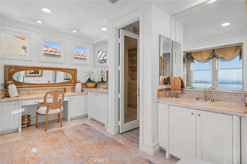 Nestled within one of Newport Coasts most prestigious and sought-after enclaves, this exceptional estateoriginally built as the communitys model homecommands a premier cul-de-sac location with breathtaking 270-degree panoramic views spanning the Pacific Ocean, Catalina Island, city lights, mountains, and rolling valleys. Designed for both elegance and comfort, the residence offers five expansive bedrooms, including a highly desirable main-level suite, ideal for guests or multi-generational living. The home has been extensively upgraded throughout, blending timeless architectural grandeur with refined modern luxury. Interiors showcase soaring two-story ceilings, expansive windows, updated contemporary finishes, new designer rugs, custom drapery, and a completely remodeled collection of spa-inspired bathrooms. The gourmet kitchen has been elevated with top-of-the-line Viking professional appliances, premium countertops, and thoughtful enhancements that cater to both everyday living and sophisticated entertaining. Additional upgrades include dual new air-conditioning systems and a high-end, whole-house water softening and filtration system designed to deliver exceptional water quality throughout the residence. Outdoors, the resort-style backyard offers an inviting pool and spa, built-in BBQ, wet bar, fire pit lounge areas, and newly customized outdoor furnishings, all perfectly positioned to capture coastal breezes and unobstructed views. Private, serene, and impeccably maintained, this estate is moments from Newport Coasts most iconic beaches, world-class shopping, dining, go