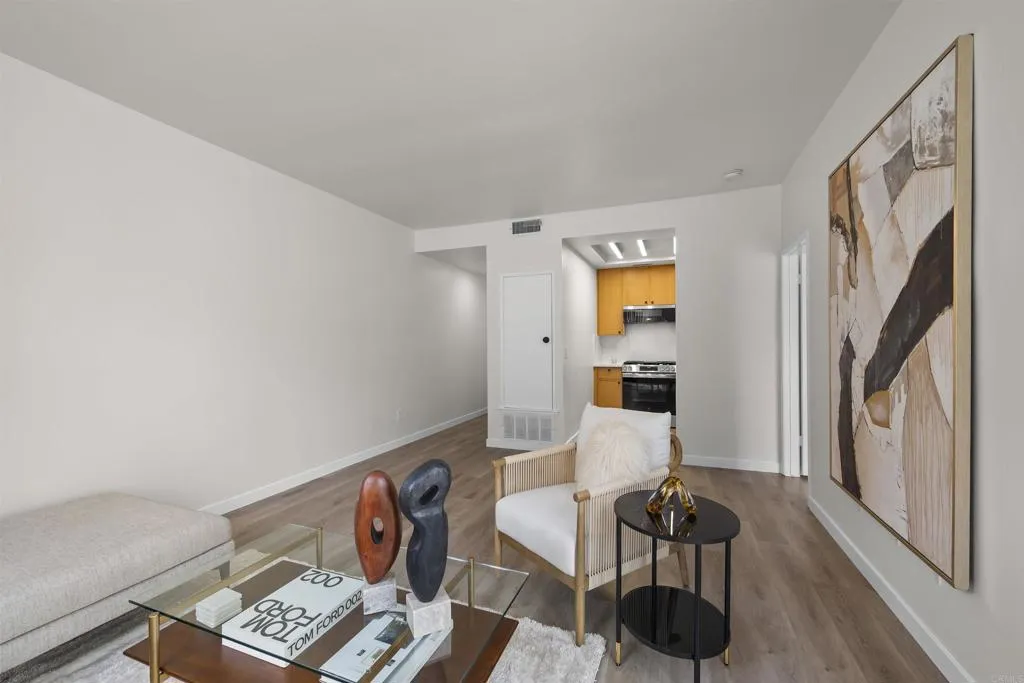 Experience the Best of City Living two blocks from the ocean in the Marina District! Welcome to this fully remodeled single story one-bedroom, one-bath residence in the heart of Downtown San Diegos vibrant Marina District. Perfectly situated along iconic Kettner Boulevard, this home captures the essence of coastal sophistication and urban convenience. Step inside to discover a modern kitchen with sleek finishes, quartz countertops, and designer cabinetry, opening to a bright living area with new contemporary flooring throughout. The modern bath showcases elegant tilework and refined details, creating a spa-like retreat. Enjoy the seamless indoor-outdoor flow through bright, large patio doors with sleek modern black trim, leading to your spacious private patioperfect for morning coffee, evening gatherings, or simply relaxing and soaking in San Diegos perfect year-round weather. Residents enjoy great community amenities, including a resort-style pool, soothing jacuzzi, clubhouse and beautifully landscaped courtyards, plus the convenience of underground assigned parking, bike storage plus closet storage. Live just steps from the Marina, Santa Fe Train Station, Seaport Village, and Little Italy, surrounded by world-class dining, boutique shopping, and endless entertainment. Experience the ultimate urban lifestyle where the city meets the sea. HOA covers water & trash. Private access to park! This wont last!