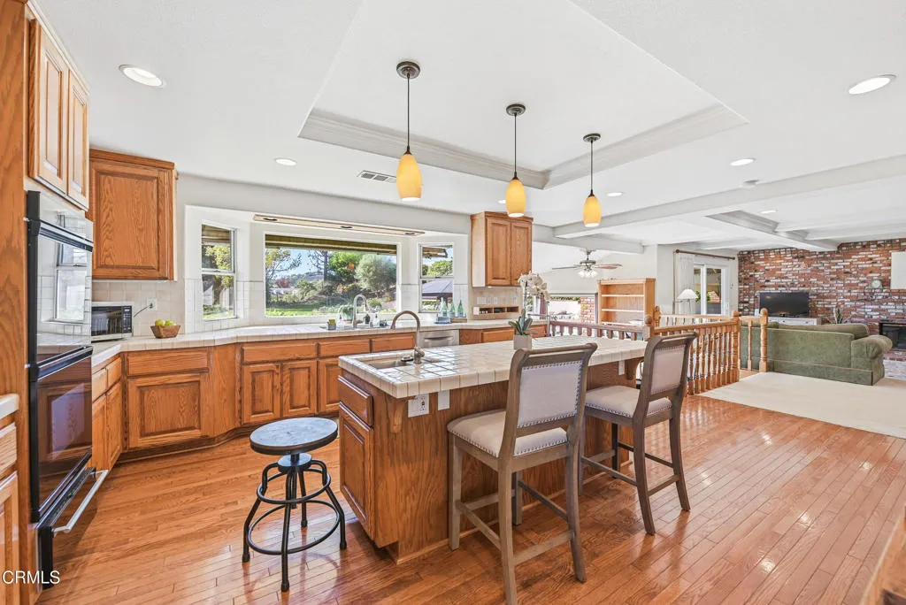Breathtaking mountain views, total privacy, and a resort-style pool set the stage for this stunning 3,605 sq. ft. retreat on a .52 acre lot in one of Camarillo's most coveted neighborhoods. Every detail of this 4-bedroom, 3-bath home was designed for beauty, comfort, and connection.Step inside and you're greeted by soaring coffered ceilings and an open-concept layout that flows effortlessly from spacious living areas to the heart of the home, a chefs kitchen with a large island, perfect for gathering and entertaining. Sunlight fills every corner, highlighting nice finishes and effortless indoor-outdoor living.The bottom level features a private guest/office area, bathroom, and a convenient downstairs laundry room. Upstairs, the primary suite is a true retreat, complete with a peaceful sitting room, fireplace, and private views from the terrace looking over the backyard.Outside, your private paradise awaits, a sparkling resort-style pool, lush landscaping, and room to relax, entertain, or simply take in the view. Come experience this beautiful Camarillo home for yourself with proximity to the 101, schools, shopping, and dining. This home defines Camarillo lifestyle at its finest!