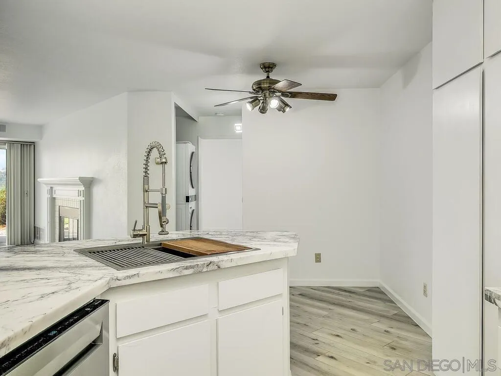 Upgraded Ground-Floor Unit with Stunning Views. Set above Mission Valley in the sought-after City Scene community, this spacious 3-bedroom, 2-bath ground-level unit offers the perfect blend of style, comfort, and convenience. With 1,271 sq ft of living space and panoramic views, this home stands out for both its location and thoughtful upgrades. The unit includes a total of three parking spaces: two in a private tandem garage and one additional non-garage space with a permit/decal. Inside, you’ll find a long list of improvements designed to enhance daily living. Luxury vinyl plank flooring adds a clean, modern touch while the interior paint creates a bright and inviting feel throughout. The kitchen has been upgraded with marble countertops and a new single-bowl stainless steel sink with a built-in cutting board—great for both cooking and entertaining. The remodeled primary bathroom features dual sink vanities and a sleek new shower enclosure, offering a private retreat at the end of the day. Additional updates include a newer water heater. Step outside to your private patio to enjoy open views and breezes, or take advantage of the resort-style amenities, including a large pool, spa, and fitness center. Perfectly situated in central San Diego, this unit offers quick access to everything from Fashion Valley Mall and Snapdragon Stadium to USD, SDSU, Mesa College, downtown, beaches, hospitals, and the airport. The City Scene community features a range of amenities including a pool, spa, fitness center, and BBQ area.