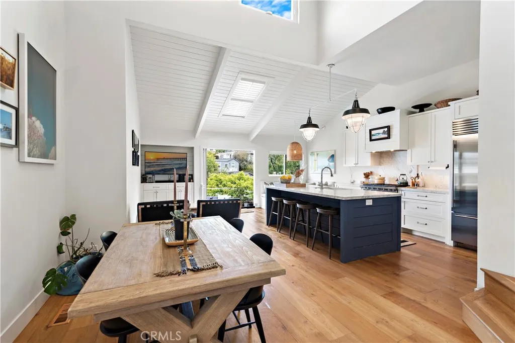 Experience Laguna Beach living at its finest in this beautifully furnished custom beach home, ideally located in the heart of the Village. Thoughtfully reimagined and impeccably appointed, this exceptional 4 bedroom, 3 bathroom residence offers approximately 2,600 square feet of refined coastal living, blending timeless charm with modern luxury. The light-filled interior features rich wood flooring, designer tile, high-end fixtures, and elegant coastal-inspired lighting throughout. The spacious primary suite serves as a private retreat, complete with a luxurious soaking tub, separate walk-in shower, generous walk-in closet, and adjoining sitting area. The open-concept kitchen is designed for both everyday living and entertaining, featuring a large center island, custom banquette seating, butlers pantry, and top-of-the-line appliances. The kitchen flows seamlessly into the dining and family rooms, as well as the outdoor BBQ and seating area, creating an ideal indoor-outdoor living experience. The inviting living room showcases soaring ceilings, abundant natural light, and a romantic fireplace. Additional features include a dedicated laundry room with built-in office space and substantial storage. A rare offering in the Village, the private electric-gated driveway accommodates up to six off-street parking spaces in addition to the attached one-car garage. This exceptional furnished residence offers the perfect blend of luxury, comfort, and convenience, just moments from Laguna Beachs renowned beaches, shops, restaurants, and galleries. Available furnished for a 12-month lease