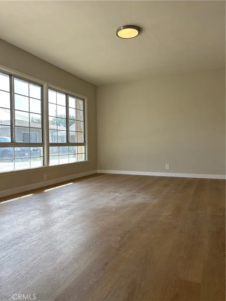 Conveniently located, this two-bedroom, one-bathroom house sits back from the street, surrounded by mature trees and spacious yards. The interior has been freshly painted, and the bathroom has been fully remodeled with a new vanity and toilet. New laminate flooring has been installed in the living room, hallways, and bedrooms. The living room features a large window that connects to the dining area, creating an open and airy feel. The remodeled kitchen is equipped with a new range oven and opens to the backyard. Both bedrooms are bright and spacious, each with ample closet space. Additional storage is available in the hallway towel closet. This home offers plenty of natural light with many windows and no shared walls.