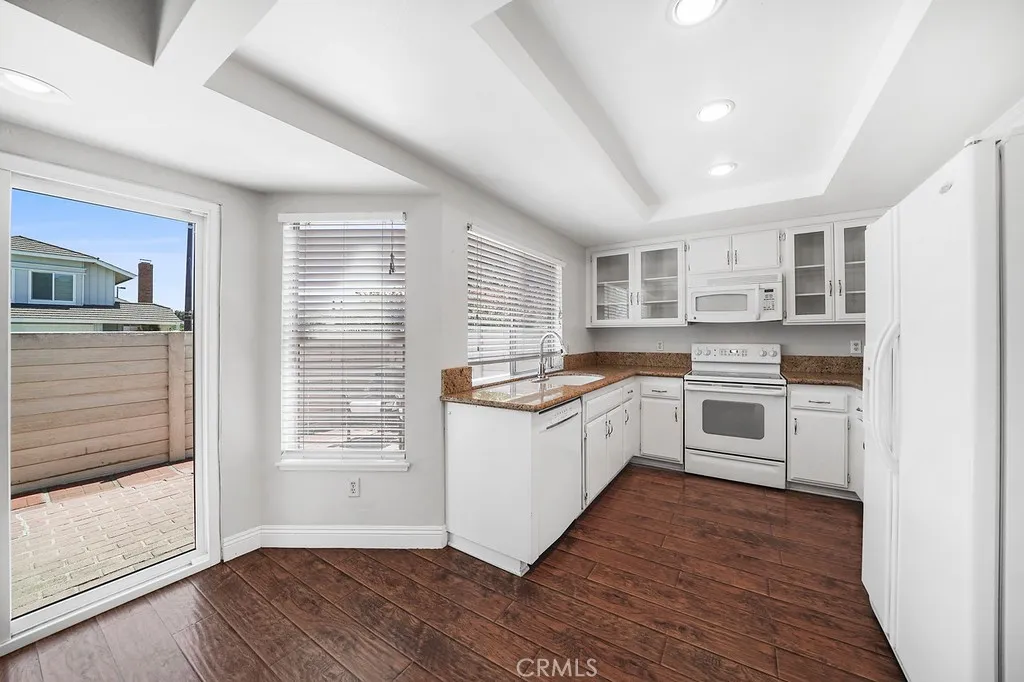 PRIVATE backyard with SOARING CEILINGS in the heart of Woodbridge featuring three spacious bedrooms, 2.5 baths and a two-car, direct access garage! Interior upgrades include: elegant laminate floors, custom paint, cozy fireplace, mirrored closet doors, upgraded baseboards and MORE! Spacious kitchen with granite counters and upgraded cabinetry! Additional room on main level can be configured as a dining room, family room or a home office. Primary suite includes plenty of closet space, Quartz vanity with dual sinks and newer fixtures! Enjoy award winning Irvine schools and Woodbridge amenities. Walking distance to Blue Lake Pool and Park.