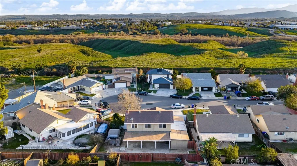 Welcome home! Discover the perfect blend of comfort, space, and versatility in this beautifully maintained home tucked away on a quiet cul-de-sac near Jurupa Hills Country Club. Step inside to a bright, open interior where natural light fills the well-designed living spaces, creating an inviting atmosphere perfect for both everyday living and entertaining. The home features dual-pane windows, an updated kitchen and bathrooms, beautiful crown molding throughout, adding warmth and character, and many other updates. What truly sets this home apart is the private downstairs living quarter with its own entrance, living room, full bathroom, and multiple walk-in closets, ideal for multigenerational living, extended guests, or a private home office. Upstairs, youll find three spacious bedrooms with views of the surrounding golf course and preserve. The primary suite offers a beautifully updated bathroom with a large walk-in shower, creating a relaxing retreat. Out back, enjoy a generous backyard with an oversized patio thats perfect for entertaining family and friends. The oversized driveway provides ample space for RV or boat parking and additional vehicles. Conveniently located just minutes from shopping, dining, schools, and parks, this home offers comfort, flexibility, and a fantastic location. Dont miss the opportunity to make it yours!