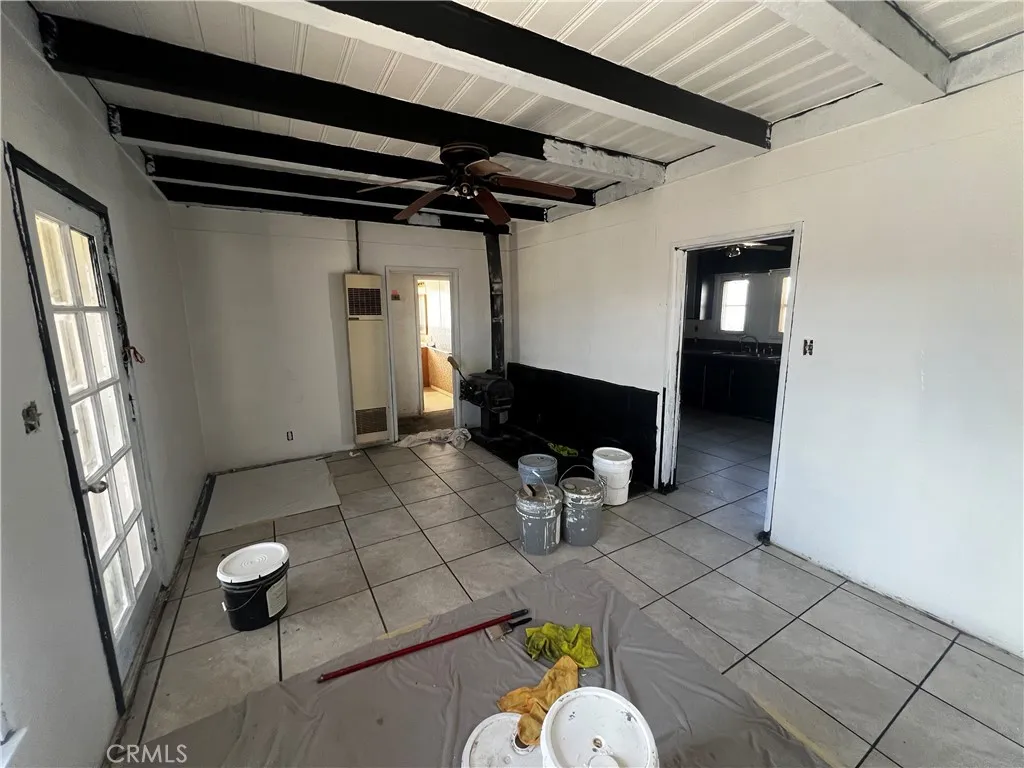 Welcome to 74262 El Paseo Dr. in 29 Palms, Californiaa rare multi-structure property with tremendous sweat-equity potential. Situated on nearly three-quarters of an acre, this unique compound features three separate structures surrounding a central courtyard. The main residence is a two-bedroom, one-bath block-construction home with impressive open-beam wood ceilings, a spacious floor plan, a generous bathroom, tile flooring throughout most of the home, and an enclosed laundry area plus a screened porch. The second structure, though not reflected in current tax records due to the age of the property, includes two bedrooms, one bath, and a kitchen, offering flexibility for future use. The third structure is an oversized laundry room/workshop, providing valuable additional utility space. While the property will require a full rehab, the roof appears free of obvious leaks and the overall bones feel solid, making this an excellent candidate for transformation. In addition, a separate lot located directly behind the property is available for purchase, and the home next door is also for sale, creating a unique opportunity for buyers seeking to assemble a large multi-property compound.