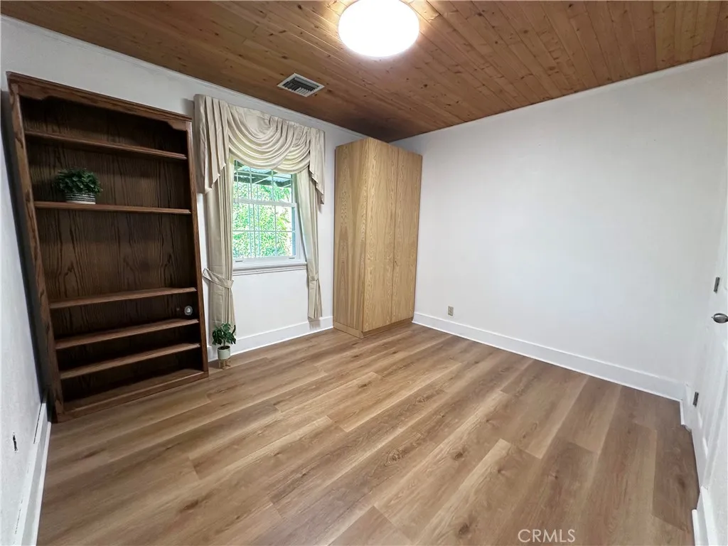 Beautifully preserved Main House MID CENTURY RETRO CHARM home located in a Triplex property that radiates charm. BIG FRONT YARD plus BACKYARD | 3 PARKING SPACES | PET FRIENDLY | LAUNDRY ROOM IN UNIT | FIREPLACE | Resting on a large fenced in 8,300 sq ft lot, and mature palm trees Step through the elegant FRENCH DOUBLE DOORS with etched glass panels into an inviting foyer featuring a VAULTED wood paneled ceiling and walls, chandelier lighting, and tile flooring, all setting the stage for the homes classic retro character. The bright, spacious living room showcases large picture windows, newer DUAL PANE WINDOWS, a cozy gas fireplace, and soft WOOL carpeting, creating a warm, light filled gathering space that perfectly captures MID CENTURY CHARM. The home features two bedrooms and one bathroom, a laundry room with sink and shelving, and offers 3 parking spaces in the driveway. Recent updates include a NEWER ROOF, windows, tankless water heater, electrical panel, CENTRAL A/C, and gutters, ensuring comfort and efficiency while preserving the homes authentic retro integrity. The spacious gated yard provides ample room for entertaining, gardening, plus an outdoor area to put your patio furniture. Enjoy the peaceful outdoor setting surrounded by orange and lemon trees, completing this truly special property. Conveniently located just minutes from the 101 and 405 freeways, Van Nuys Airport, Flyaway BUs to LAX, Balboa and Woodley Parks, golf courses, and Costco, offering easy access to top shopping, dining, and entertainment. The property is a Triplex and is the Main house. Only 1 sm