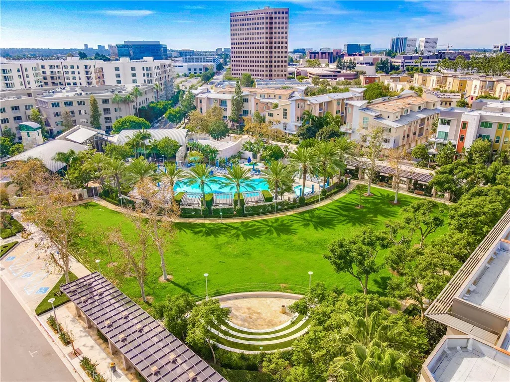 Beautuful townhouse-style home situated on a front-row premier park location that features beautiful views. Spanning approximately 2,245 square feet, that perfectly embodies the ideal indoor-outdoor living experience. This 3-bedroom 2.5-bath residence showcases open and airy living spaces adorned with an array of custom finishes. Step inside to discover the main living area featuring elegant hardwood flooring, designer window treatments, modern ceiling fans thoughout and custom paint that reflects modern sophistication. High-volume ceilings and recessed lighting create a bright atmosphere, while the master suite, large walk-in closet and amazing views offer a luxurious retreat. Exceptional natural light floods the space, enhancing the private location of this thoughtfully designed home. Enjoy two outdoor balconies that provide views of the park and the Irvine Financial District. The highly sought-after open floorplan includes a chef-inspired kitchen, complete with a large center island, quartz countertops, modern cabinetry and professional stainless steel appliances, making it perfect for culinary enthusiasts. This deluxe property also boasts a RARE oversized finished 3-car garage, offering additional storage and direct access to the homes interior. Living like a single-family home, there are no other units above or below, ensuring peace and privacy. Residents can indulge in resort-style amenities, including two heated swimming pools, a clubhouse, a state-of-the-art fitness center, an exercise/yoga studio, spas and a large multi-purpose room. Additional amenities include a